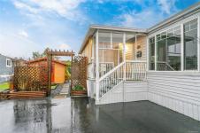 Welcome to Sharman Mobile Home Park, a 55+ community in the heart of North Nanaimo, just minutes from shopping and amenities. Set in a quiet pocket of the park, this home offers comfort, function, and a spacious, low-maintenance yard. A fully enclosed glass sunroom adds year-round light and a welcoming entrance. Inside, the bright living room includes a gas fireplace, offering an easy space to read, relax, or visit with friends. The kitchen features an eating area, gas stove, and updated dishwasher, with a combined main bathroom and laundry down the hall. You’ll also find a 2nd bedroom and a primary suite with generous closets and an adjoining bathroom with walk-in shower. A new heat pump and furnace support efficient comfort, with new blinds and a hot water tank installed about two years ago. Outside, a large wired shed with double doors adds extra storage. You’re close to Woodgrove Centre, big-box shopping, the library, and quick access to Highway 19 and the Inland Island Highway.
