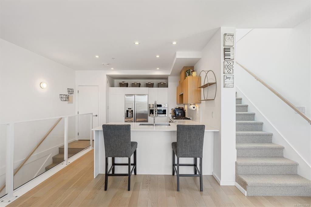 Discover modern townhome living at Rhodo by Aryze in Fairfield, one of Victoria’s most desirable neighbourhoods. This 2 bedroom, 3 bathroom home offers 1,047 ft² of intelligently designed space across three levels, plus secure underground parking, bike storage and storage locker. A 268 ft² south-facing patio with Olympic Mountain views and gas outlet creates exceptional outdoor living, perfect for entertaining and enjoying all-day sun. Premium finishes include oak flooring, wool carpet, Bosch appliances with gas cooktop, quartz countertops, contemporary cabinetry and oversized windows that maximize natural light. Upstairs, both bedrooms feature vaulted ceilings, including a primary suite with skylit 4-piece ensuite. Built with durable, energy-efficient materials, this pet-friendly and rental-friendly home offers modern design and lasting comfort just steps to Gonzales Beach, Fairfield Plaza, parks, cafés and top schools - a standout opportunity in the heart of Fairfield real estate.