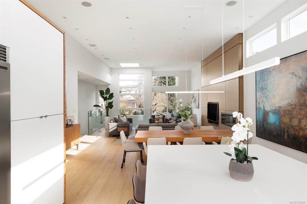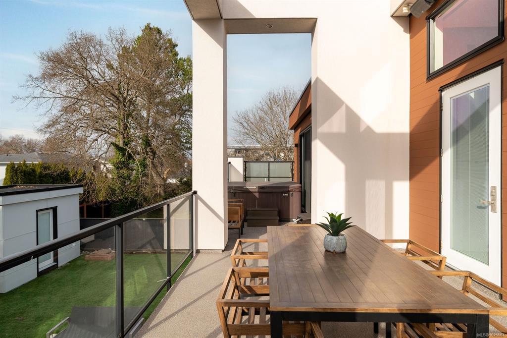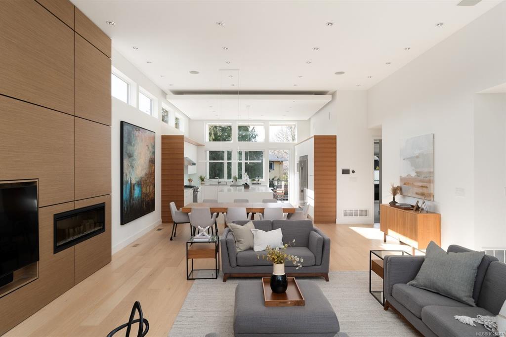 Rare opportunity to own this stunning Zebra-designed home! This 6-bedroom residence, curated by one of Victoria’s premier designers, is vacant and ready for immediate possession. Bright and spacious, it features an open-concept layout, 12-foot ceilings, and abundant natural light. Perfect for extended family living, with a suite ideal for income or guests. Highlights include engineered walnut in the kitchen, feature wall with hidden door, Control4 smart home system, motorized Hunter Douglas blinds, security cameras, 48” fridge/freezer, white oak solid-core doors, LED lighting, and heated floors in main bath and ensuite. Upstairs features white oak floors and wool carpets. The backyard offers artificial turf, a spacious deck, private hot tub, and a storage shed, perfect for entertaining and low-maintenance living. Call now and don’t miss this opportunity!
