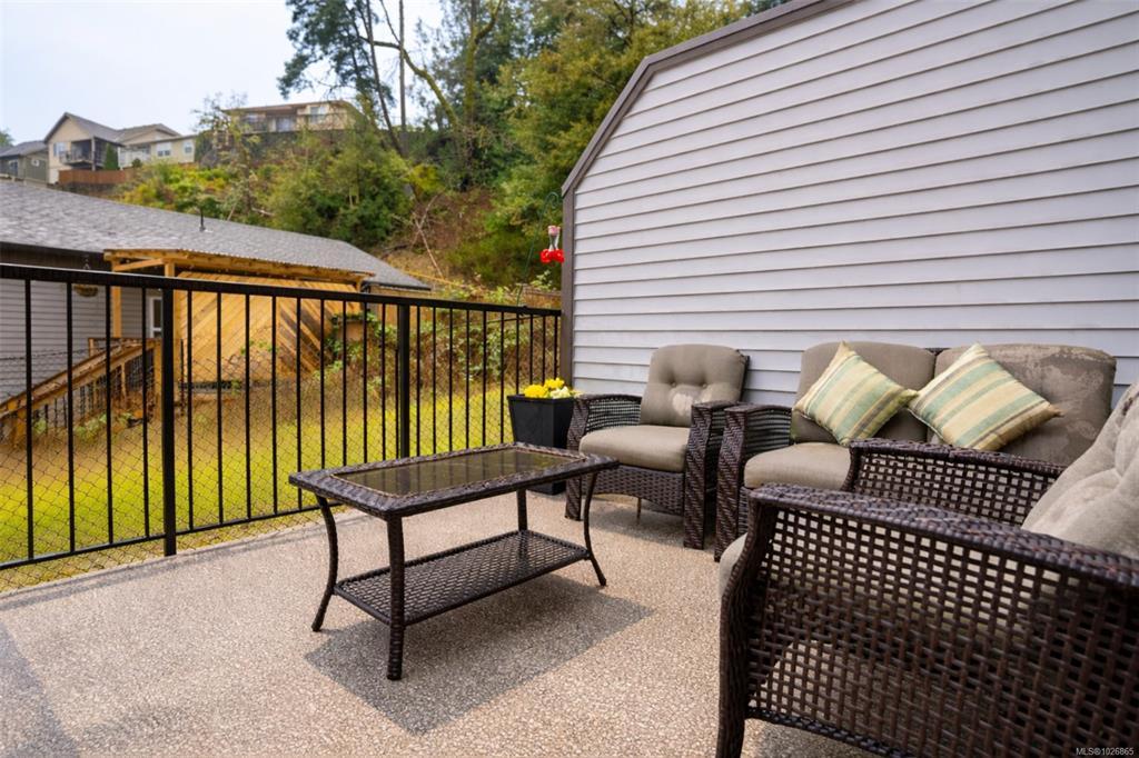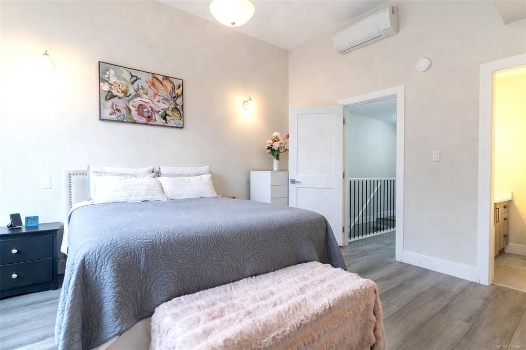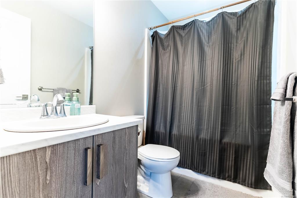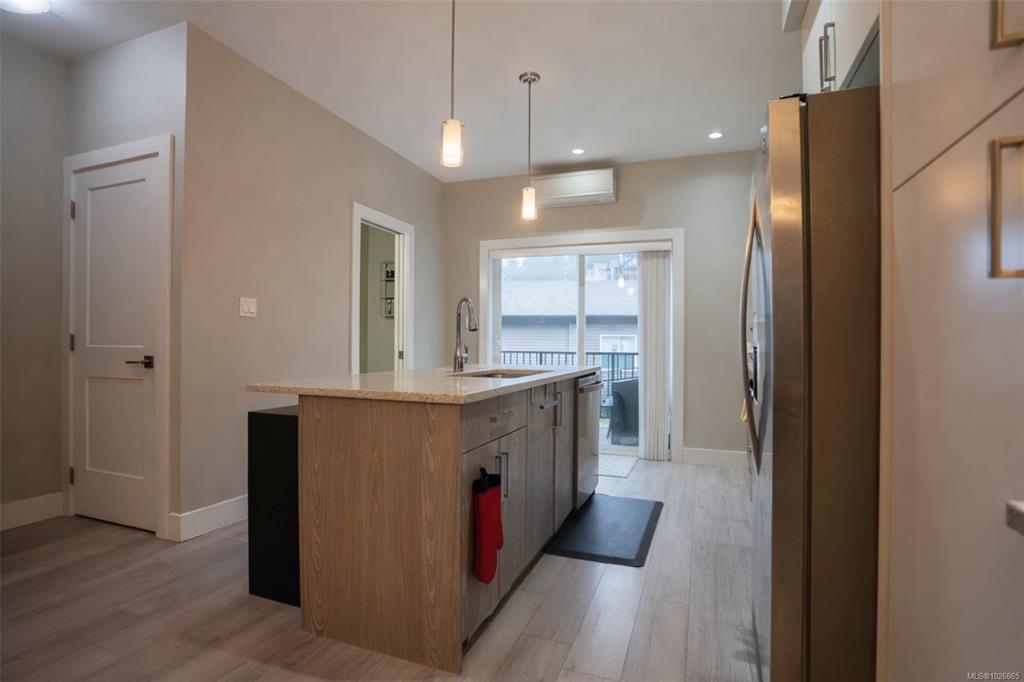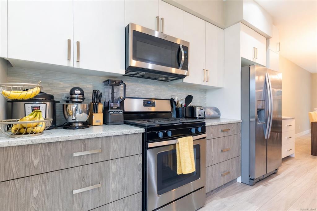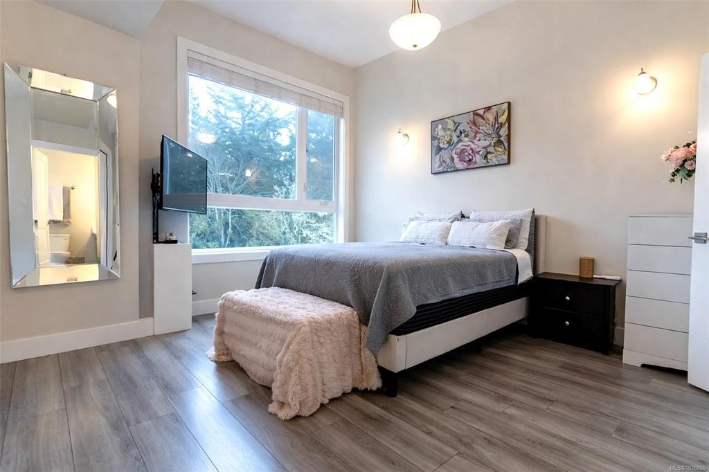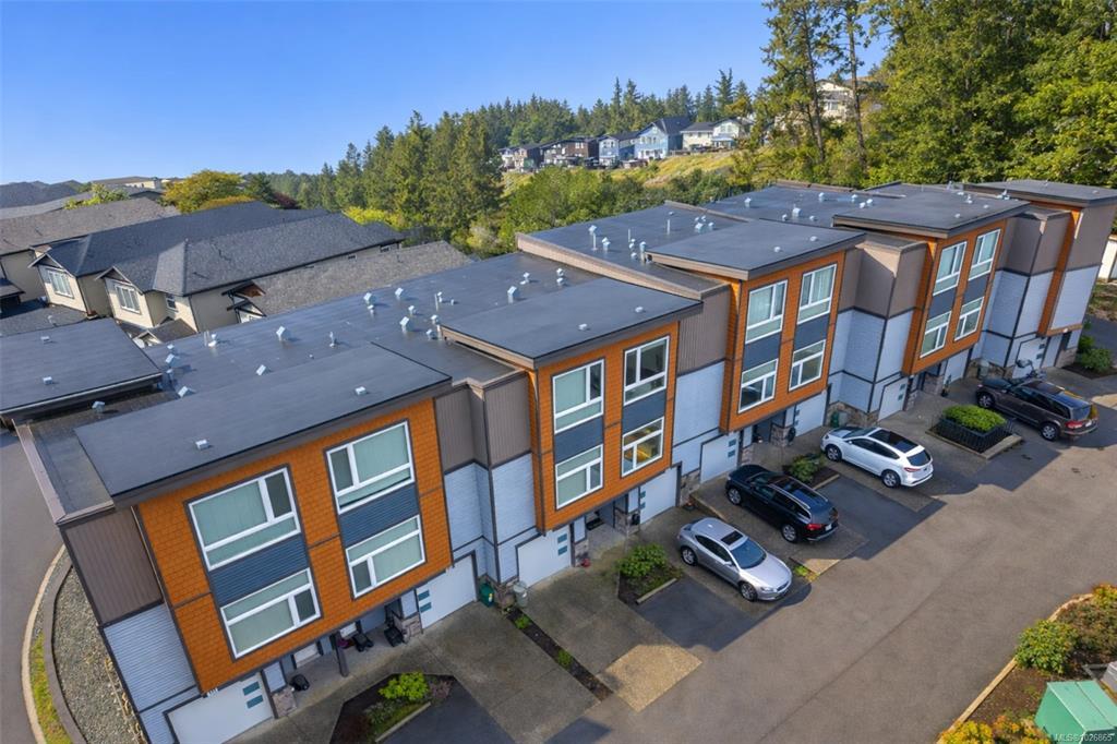 OPEN HOUSE Sun March 11st, 12-2pm. Welcome to this modern, well-maintained three-level townhome offering a functional layout, stylish finishes, and great outdoor space in a convenient Westshore location. The entry level features a single-car garage with room for storage, a home gym, or workshop, plus under-stair storage. Enjoy direct access to the Galloping Goose Trail and nature views across from the dog park at Willing Park. The bright main level offers an open-concept kitchen, dining, and living area with quartz countertops, stainless steel appliances, a large island, and a sleek electric fireplace. The dining area opens to a generous deck, perfect for outdoor enjoyment. Upstairs are two bedrooms, including a spacious primary with double closet and ensuite, plus a second bath and in-suite laundry. A fully fenced patio enhances outdoor living. Located in Langford’s Wild Ridge community, close to amenities, parks, trails, lakes, and Highway 1 access.