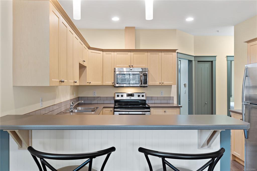 Perfect for first-time buyers or investors, this bright 3-bedroom, 2-bath upper unit offers a smart, functional layout in an unbeatable location. The spacious primary bedroom features a 3-piece ensuite and an oversized walk-in closet. The open-concept kitchen includes an eat-in bar, pantry, and abundant storage, flowing seamlessly into the sunlit living room with large windows. Step onto the private balcony off the third bedroom/den to enjoy your morning coffee and sunrise views. Additional highlights include in-suite laundry, a large heated and powered storage room, dedicated parking, and ample visitor parking. Walk to Quality Foods, restaurants, shops, both levels of schools and a quick commute to the university—ideal for families, students, or savvy investors.