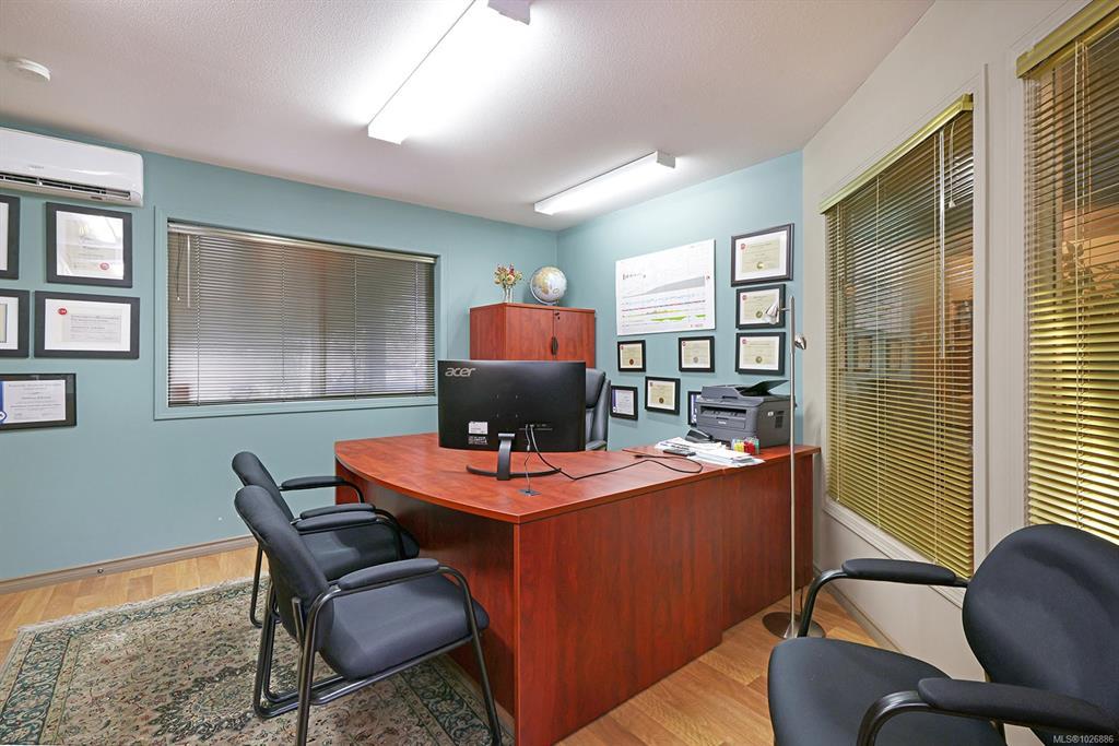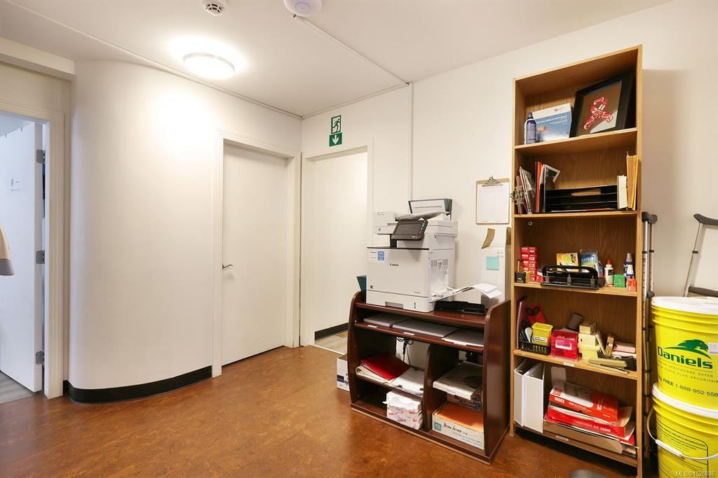 Unbeatable downtown Courtenay location with exceptional flexibility and potential! This 3,781 sqft C-1 zoned building features 2 commercial and 1 residential units, 9 on site parking stalls, rear lane access, and abundant street parking. The primary commercial space offers an accessible entrance, bright reception area, 6 private offices, and a spacious meeting room with a cozy gas fireplace. The second unit, with both front and rear access, includes a functional layout with reception, 2 offices, a kitchenette, and a washroom. Upstairs, you'll find a fully renovated 2 bedroom apartment with vaulted ceilings, a gas fireplace, modern open concept kitchen and living area, a stylish 4 piece bath, laundry, and a private back deck with peaceful mountain views. Recent updates include new fencing, updated HVAC, new hot water tanks and Poly-B remediation. A rare opportunity to invest, live, and work in a high visibility, high demand area with solid income potential and excellent versatility.