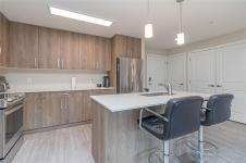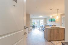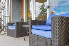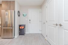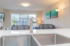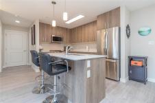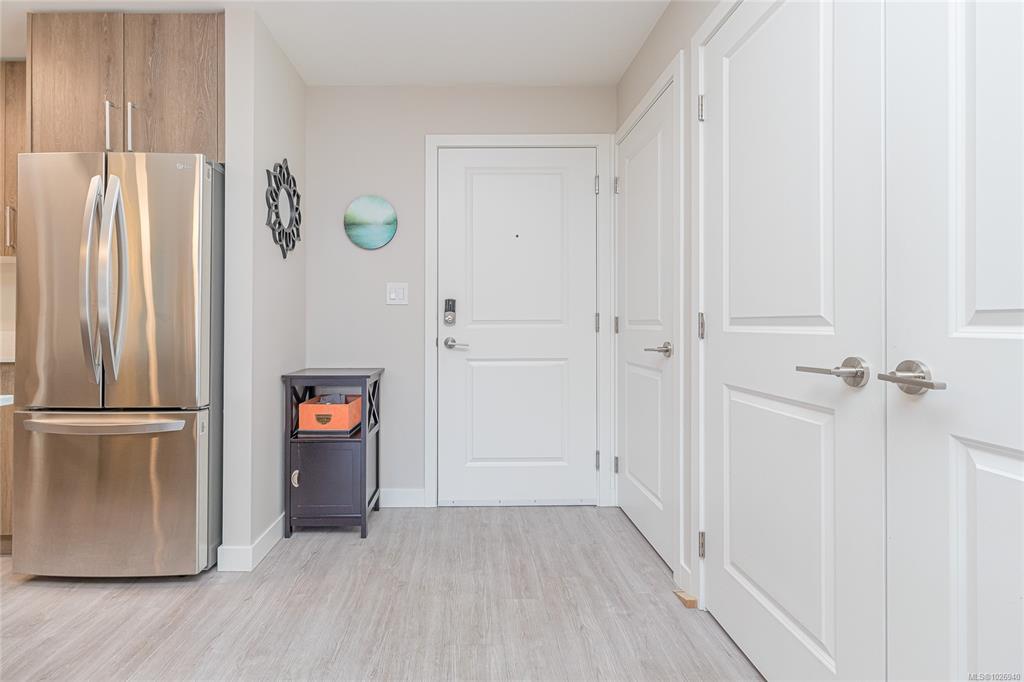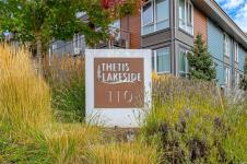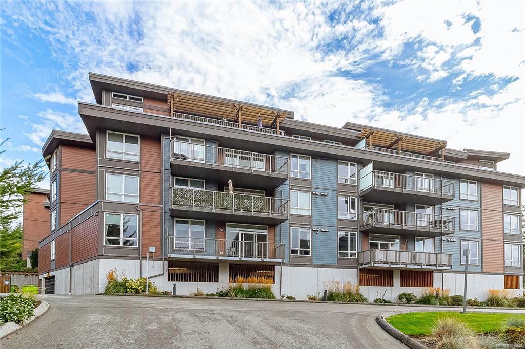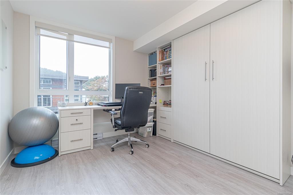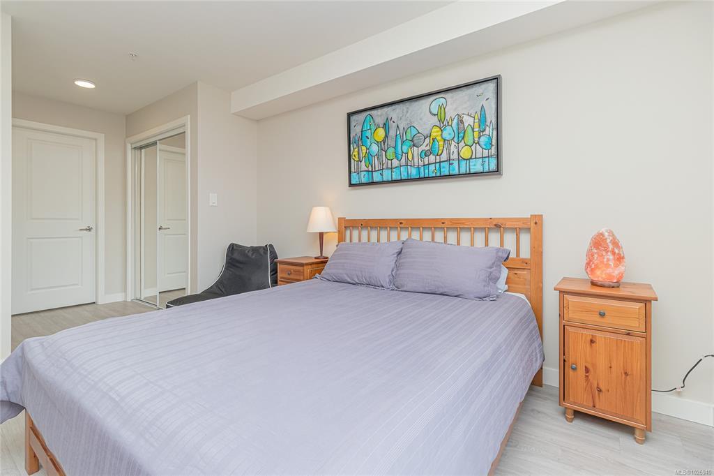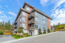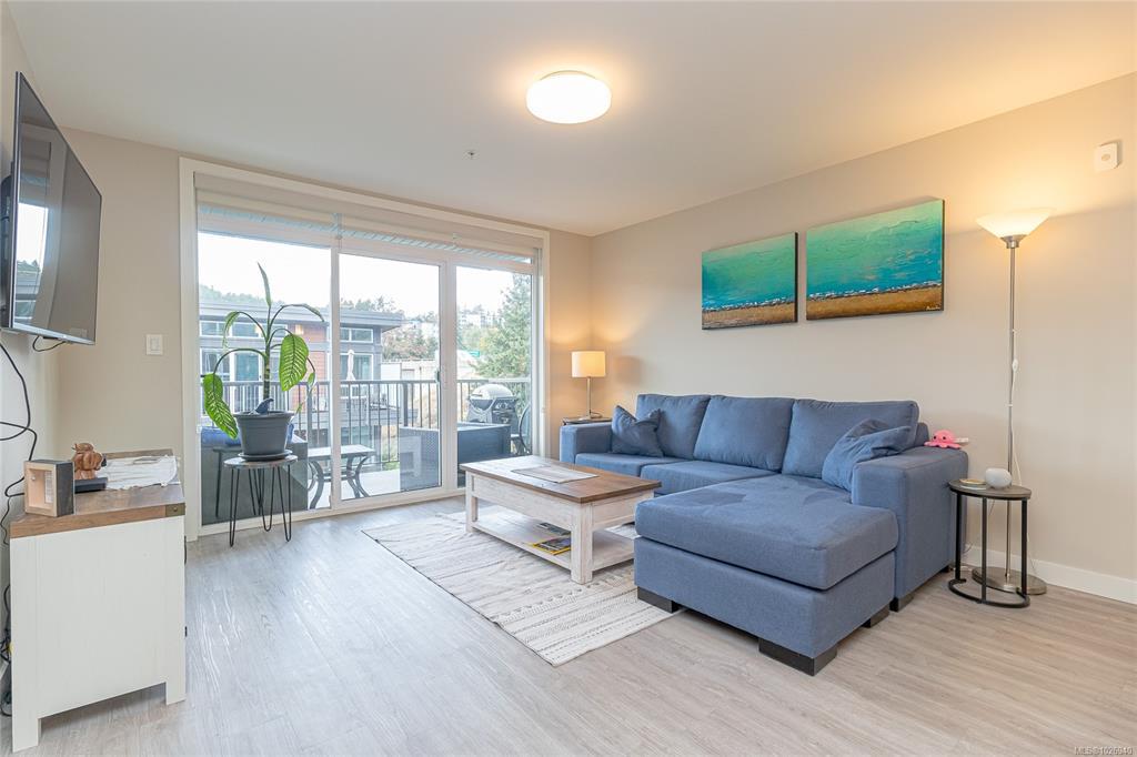 OH SAT FEB 28th 1-3 pm. Discover Thetis Lakeside! Highly desirable development (2019) perfectly positioned just steps from expansive green space. This bright 2 bed/2 bath unit features a spacious & split-bedroom layout & a new (Feb 2026) spa-inspired ceramic tile walk-in shower in the primary ensuite. The open-concept main living area includes a kitchen w/ a stone countertop central island, stainless steel appliances & plenty of cabinets & prep space. Oversized windows fill the living area w/ natural light & a sun-soaked west-facing balcony offers views of Mill Hill & beyond. The interior showcases light-toned finishes & vinyl plank flooring creating a warm & contemporary space. Custom Murphy Wall bed in 2nd bedroom. Generously sized storage on the same floor, secured underground parking & within proximity to the Galloping Goose & E&N bike paths, The Nest Café & Six Mile Pub. Building amenities include bike/kayak storage & a fenced dog park. Pet-friendly with no size restrictions!