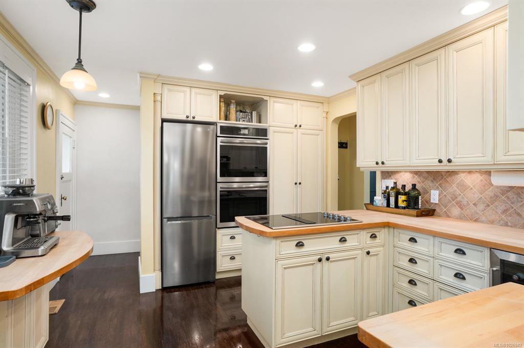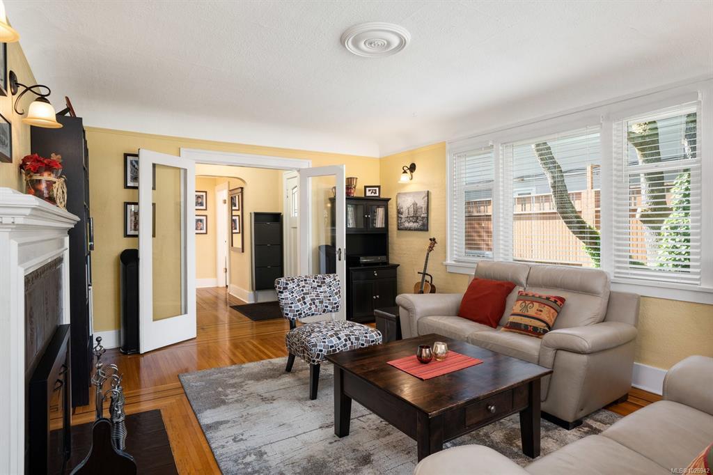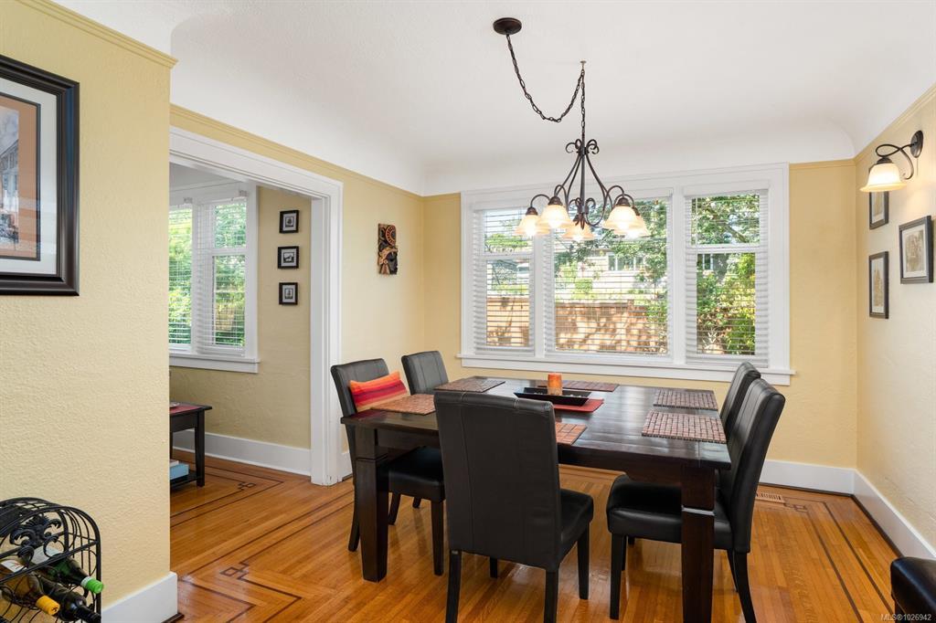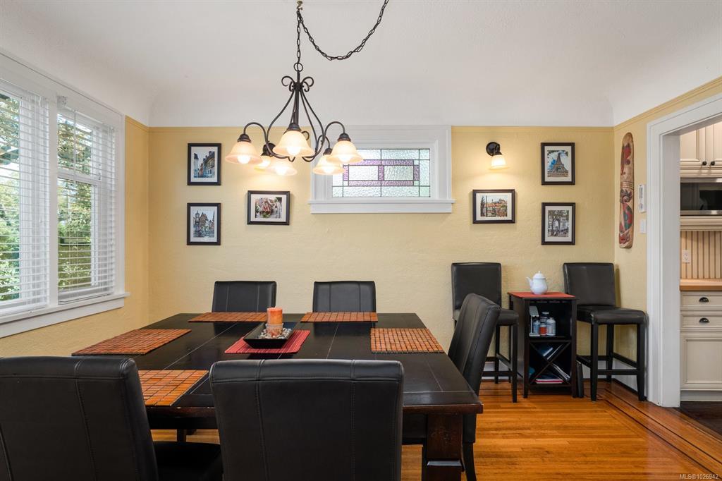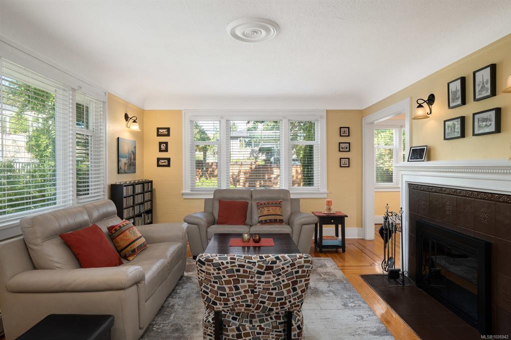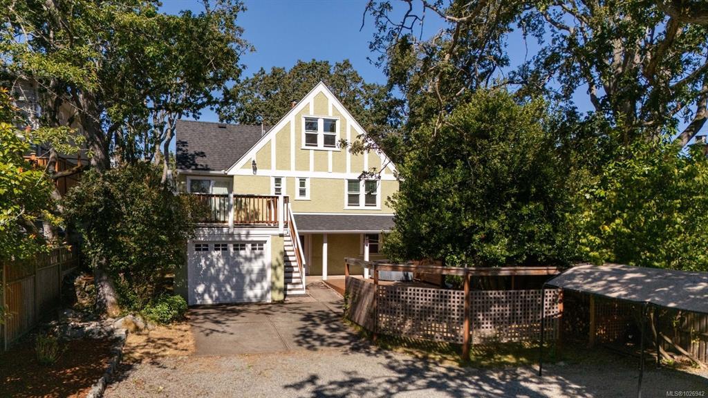Welcome to 1959 Hampshire Road, a beautifully refurbished character home ideally located in desirable Oak Bay. This spacious residence offers 5 beds, 2baths within nearly 3,000 sq.ft. feet of bright, inviting living space. Newly refinished Oak floors with mahogany inlays& stained glass windows add timeless charm, complementing the generous living room centred around a wood-burning fireplace. Enjoy 529 sq.ft. of outdoor space across 3 decks, perfect for relaxing or entertaining. Additional highlights include a sauna, music room, office w/ separate entrance, wood stove for supplemental heat & plenty of storage throughout. Modern upgrades such as enhanced electrical systems & hot tub add comfort & style. A private electric gate provides access to a quiet lane & the attached garage. Just a few blocks from Willows Beach, Estevan Village, Oak Bay Village & close to Willows Elementary & OB High School, this character-filled home offers a perfect blend of classic appeal & contemporary living.