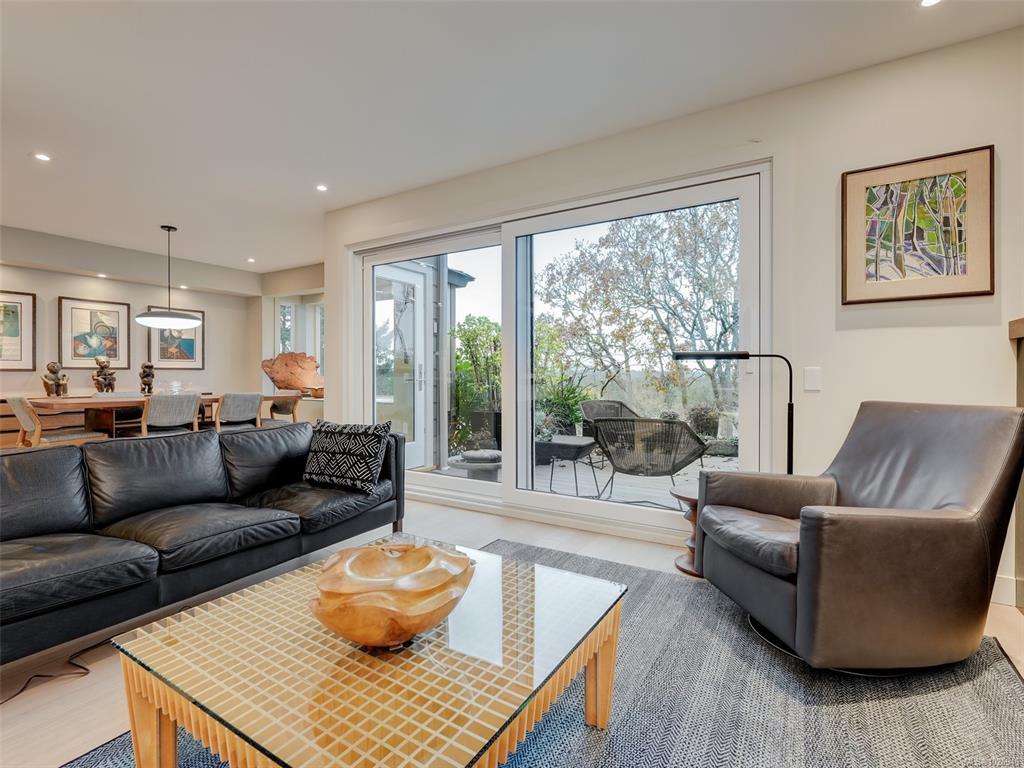 THE 2025 SILVER CARE AWARD WINNER– One look & you’ll know this home is truly EXCEPTIONAL. Approx. 2,200 sq. ft. of beautifully finished living space w/ ocean & Mt. Doug views. Completely redesigned & reimagined, this stunning residence was taken back to the studs & rebuilt to an exacting standard w/ meticulous attention to detail & craftsmanship. Features include European white oak flooring, pot lighting, custom solid white oak cabinetry, natural Italian stone countertops, a statement fireplace w/ white oak mantel & stone surround & thoughtfully designed custom built-ins & closet systems. Offering 3 beds + den & 3 baths. Situated in prestigious Wedgewood Estates, a sought-after gated community on 16 private acres. Residents enjoy access to a clubhouse, indoor pool, hot tub, sauna, tennis court & RV parking. Just a short stroll to Cadboro Bay Village, Gyro Beach & Telegraph Cove. A rare opportunity to own a meticulously renovated home offering EXCEPTIONAL DESIGN & VALUE.