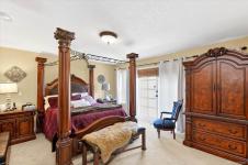 The primary suite features a walk-in closet, an ensuite with a walk-in shower & jetted tub, & French doors opening onto a second deck.