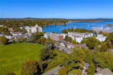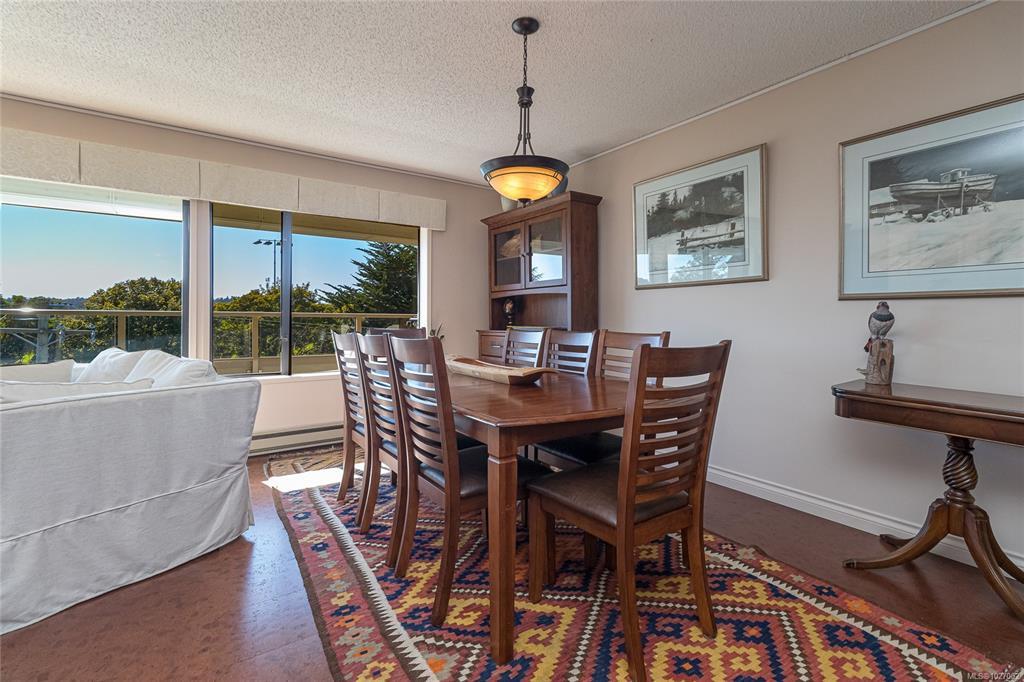 Perfectly situated in the heart of South Oak Bay, this beautifully updated top floor end unit condominium offers the ideal downsizing opportunity. Enjoy an oversized open-concept kitchen, living, and dining area featuring a remodeled kitchen and a wall of windows that fill the space with natural light while showcasing Olympic Mountain and Newport Park views. The smart floor plan provides flexibility with two—or possibly three—bedrooms, including a spacious primary suite with walk-in closet and ensuite. Additional features include warm cork flooring, in-suite laundry, and generous storage throughout. This complex does not allow pets. One secure underground parking stall is included plus secure e-bike storage. Step outside to find a bus stop at your front door, oceanfront walking paths just around the corner, and shops, restaurants, and amenities only blocks away in Oak Bay Village. A perfect blend of comfort, style, and location in one of Victoria’s most desirable neighborhoods!