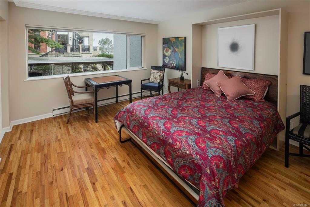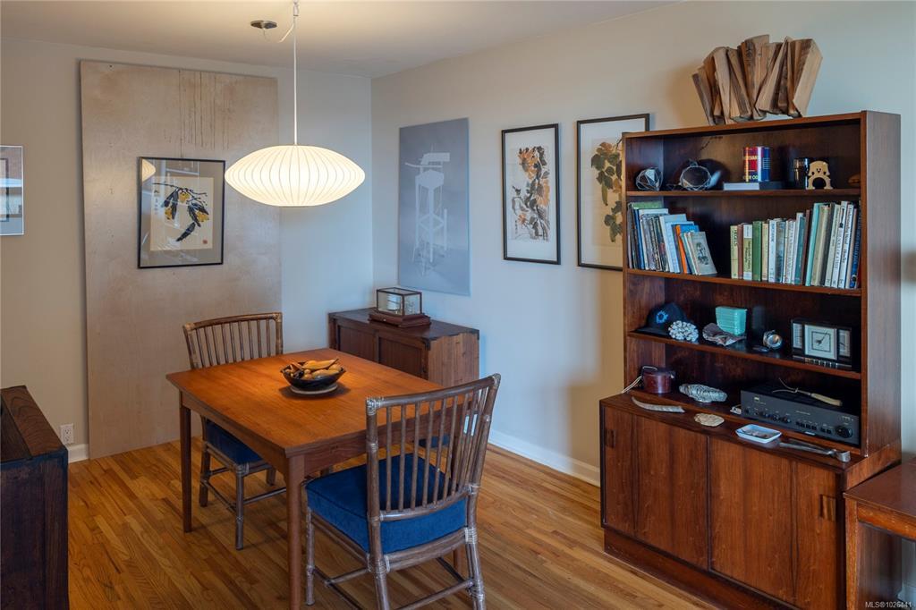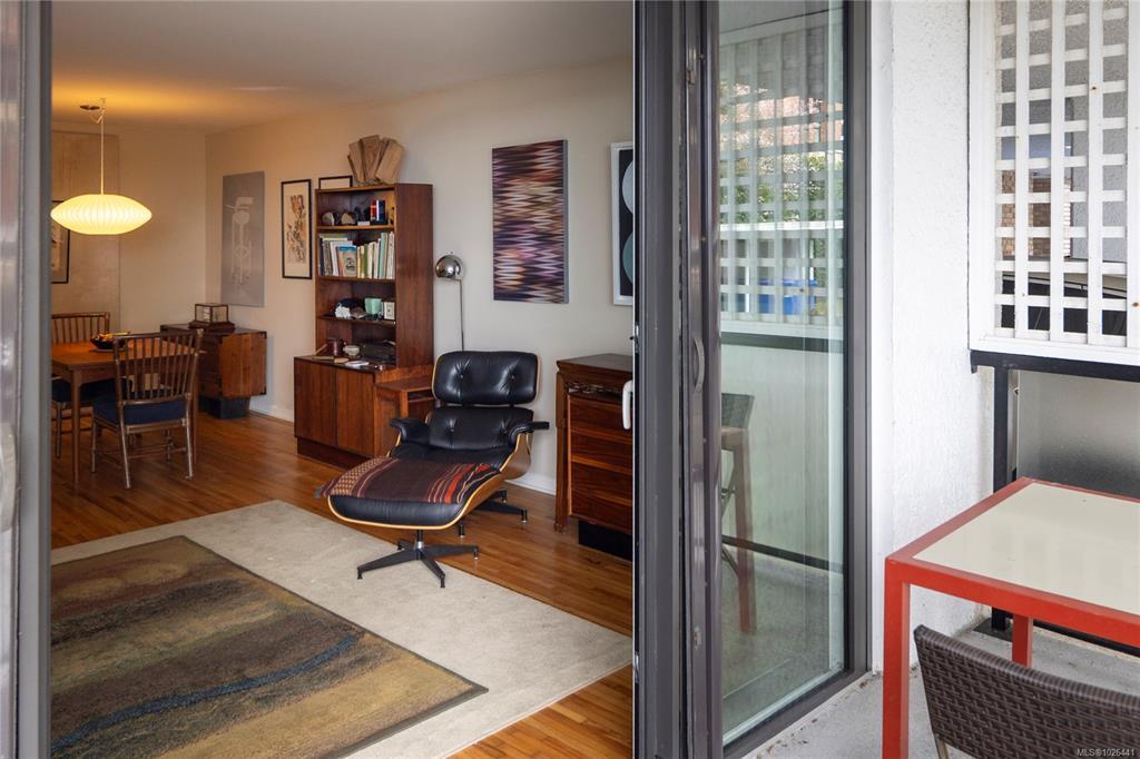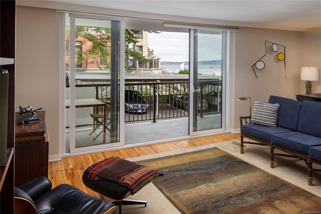 Welcome to this beautifully maintained one-bedroom, one-bathroom pet-friendly unit in the prime Hampshire House, offering gracious grounds close to golf clubs, Marinas, Hotels and Parks! This 866 square foot condo boasts oak floors, a spacious living/dining area with ocean views, and access to a large deck via floor-to-ceiling sliding glass doors. The galley kitchen and large bedroom, complete with a Murphy bed, provide comfort and functionality. This classic modernist steel and concrete building features a guest suite, a common viewing lounge with ocean views, a storage unit, bike lockers, a workshop, a large laundry area with new machines, and an accessible private beach. Enjoy a short stroll to the Victoria Golf Club, Oak Bay Marina, and a variety of restaurants and cafes. Experience one of the most beautiful locations in the Oak Bay market.