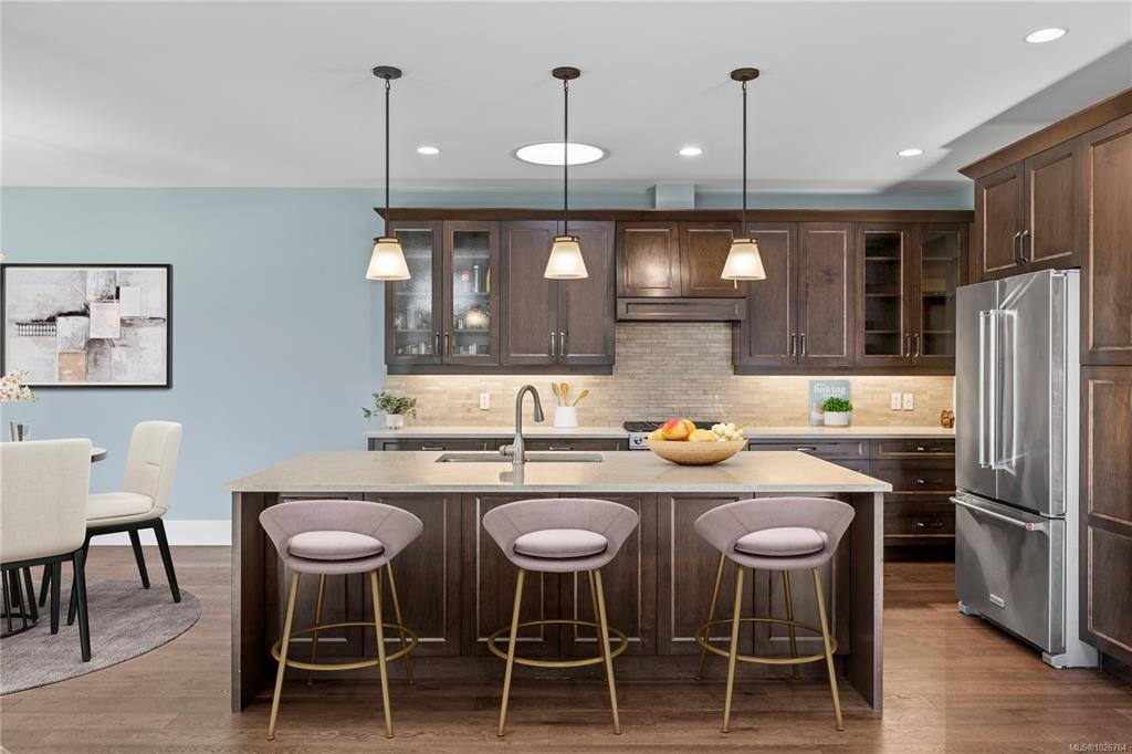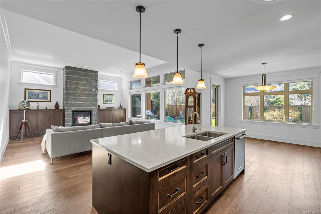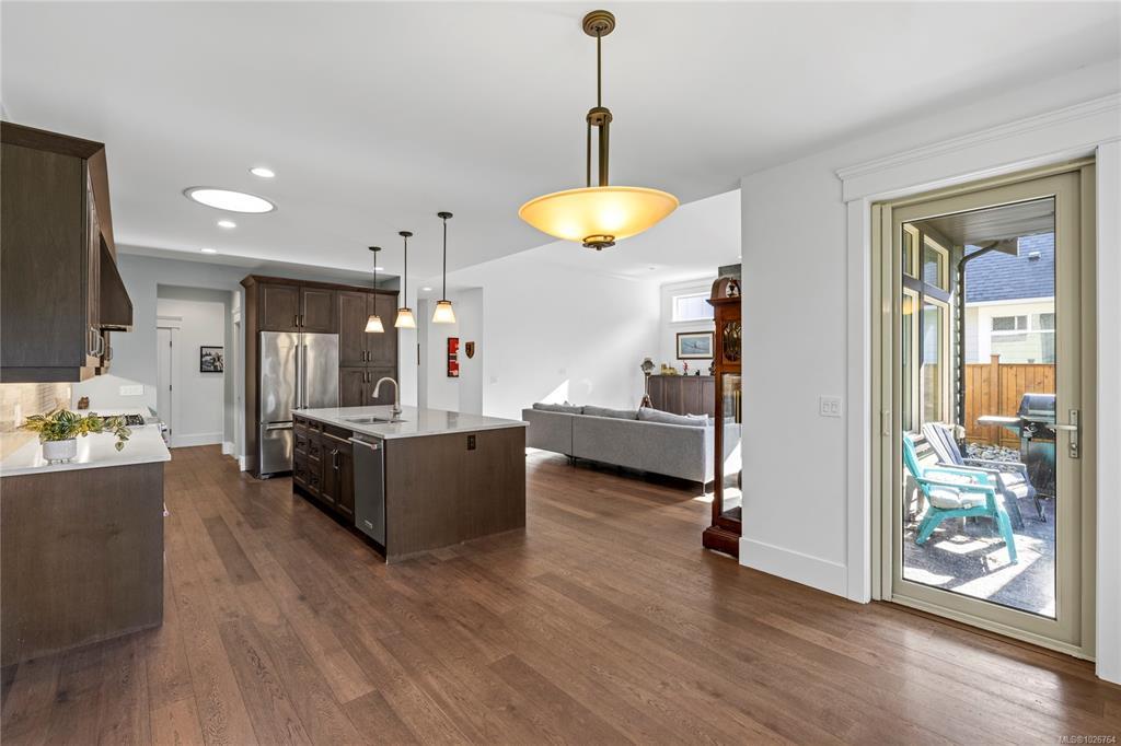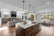 Eaglecrest Rancher at its finest! This exceptional 2000+ sqft rancher offers a thoughtfully designed open layout that stands out for its comfort & functionality. Situated on a peaceful street & backing onto protected green space, this executive home is a short stroll to one of the community’s most loved sandy beaches. Custom built by the highly regarded KS Bate Construction, the home reflects superior quality & is crafted with refined finishes & millwork. The inviting great room connects effortlessly to a private backyard & covered, stamped concrete patio, equipped with a gas hookup for a future fire pit. The spacious kitchen is complete with a generous island & pantry, while the great room has a dramatic floor-to-ceiling stacked stone fireplace & custom cabinets. The primary suite offers a peaceful escape with luxurious ensuite & spacious walk-in closet. The fully fenced southwest backyard provides plenty of natural light, privacy & space while the front yard has gorgeous curb appeal.