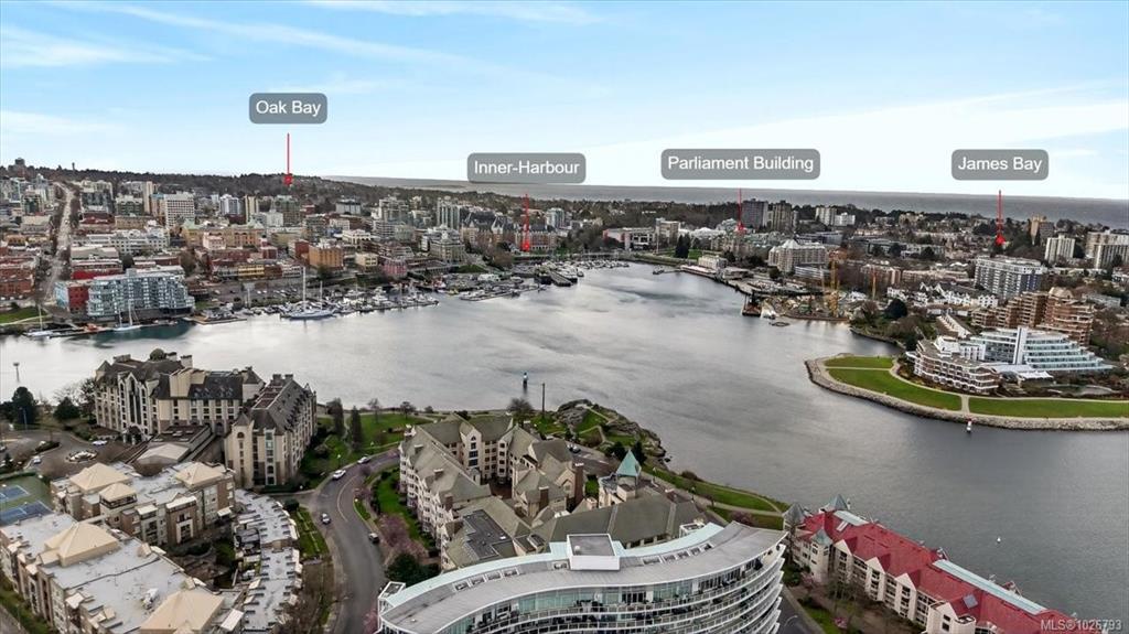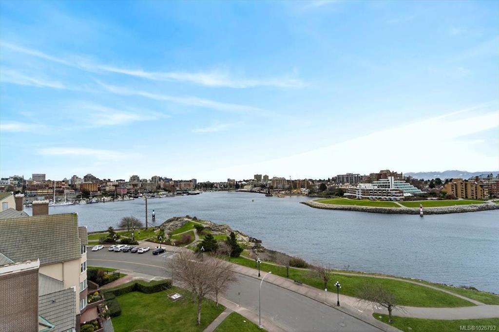 **OH SUN 2-4PM** Experience coastal elegance at Victoria’s prestigious Songhees Point. This expansive 1,500 sqft 2-bed, 2-bath corner unit offers premium oceanfront living just steps from the Inner Harbour. Flooded with natural light from stunning bay windows, the beautifully modernized interior features updated flooring, cozy gas fireplace & refreshed kitchen with sleek cabinetry, countertops & appliances. Retreat to your private, covered deck to enjoy fresh ocean breezes & water view. The generous primary suite boasts a walk-through closet & ensuite. A large in-suite laundry & storage room keeps your space perfectly pristine. Built with solid steel/concrete, the building offers impressive amenities: spectacular rooftop terrace (city's BEST SPOT to watch fireworks!), guest suite, social lounge, boardroom, secure parking, bike storage, car wash area & storage locker. Enjoy tranquil waterfront paths, dining, shops & water taxis right at your door, all just a short stroll from downtown.