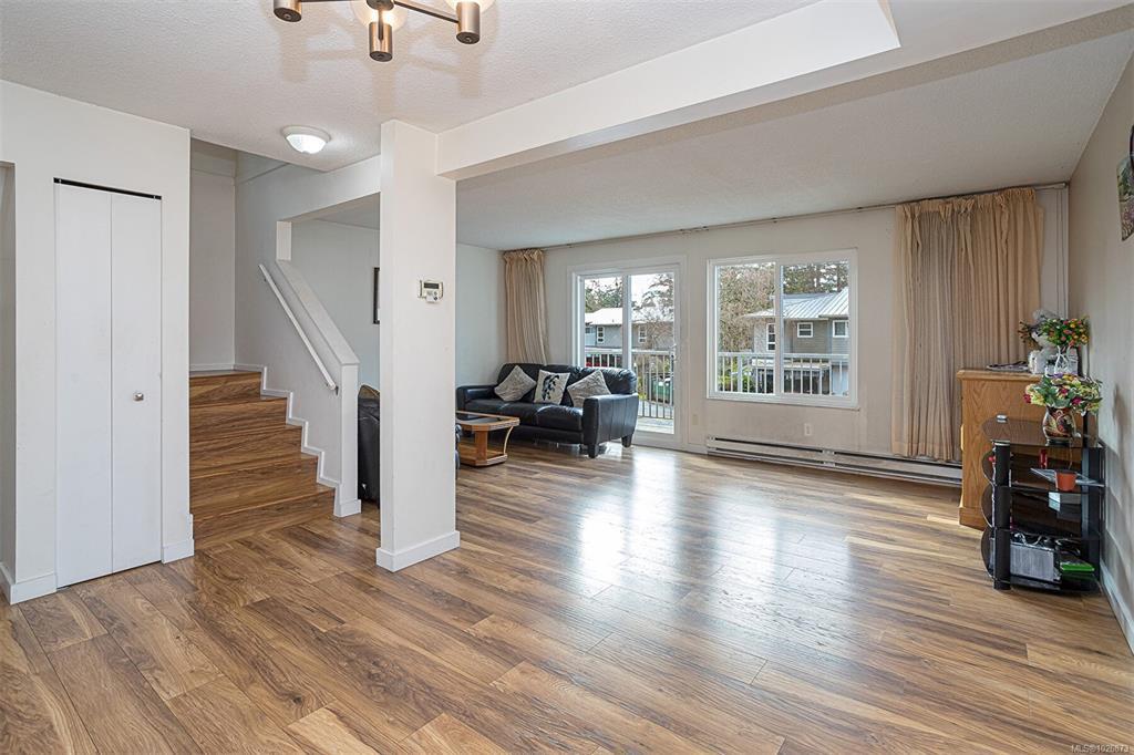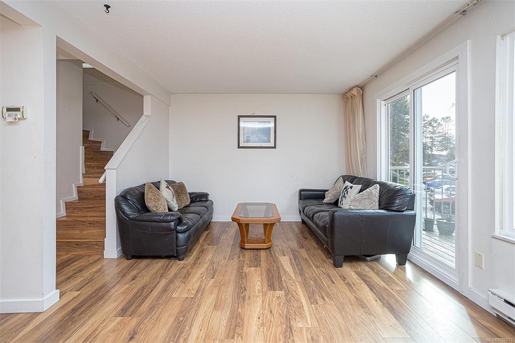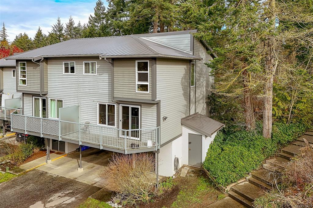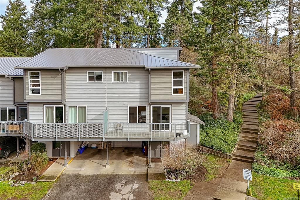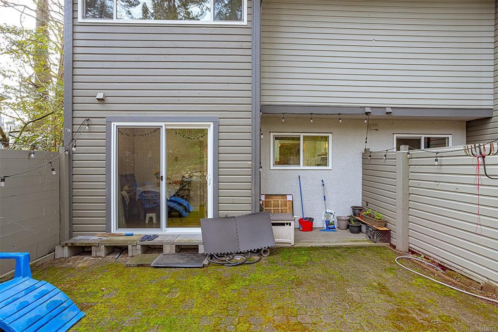 FAMILY-FRIENDLY END-UNIT TOWNHOME – Bright and spacious 1,700+ sq.ft. 4-bed, 2-bath home offering incredible value and room to grow. The sun-filled main level faces south and features an open layout with generous living and dining areas that easily accommodate large furniture, plus a large deck perfect for soaking up sunshine. The eat-in kitchen opens to a private patio with garden beds leading to a peaceful, park-like setting. Upstairs offers 3 bedrooms and a full bath, while the versatile lower level includes a large den or potential 4th bedroom. Step out to your private patio and garden beds backing onto peaceful green space. Kids will love the outdoor pool while you enjoy your park-like setting. The proactive strata have completed major updates, brand new metal roof & vinyl windows. Covered parking and storage included. Walk to schools, Tillicum Mall, Pearkes Rec Centre, parks, Galloping Goose & Colquitz trails. Pet- and rental-friendly strata. RARE FIND WON'T LAST—call now!