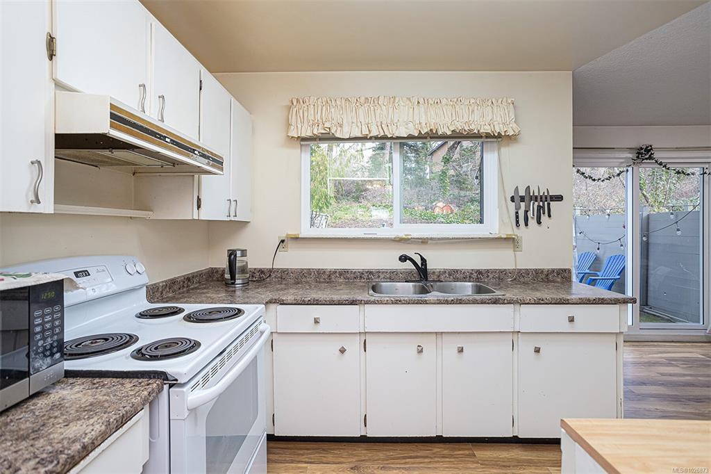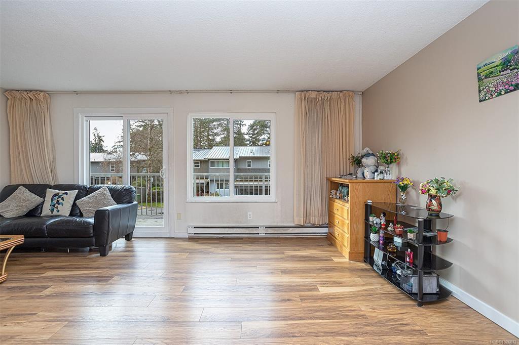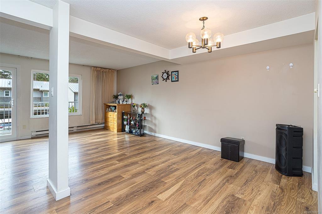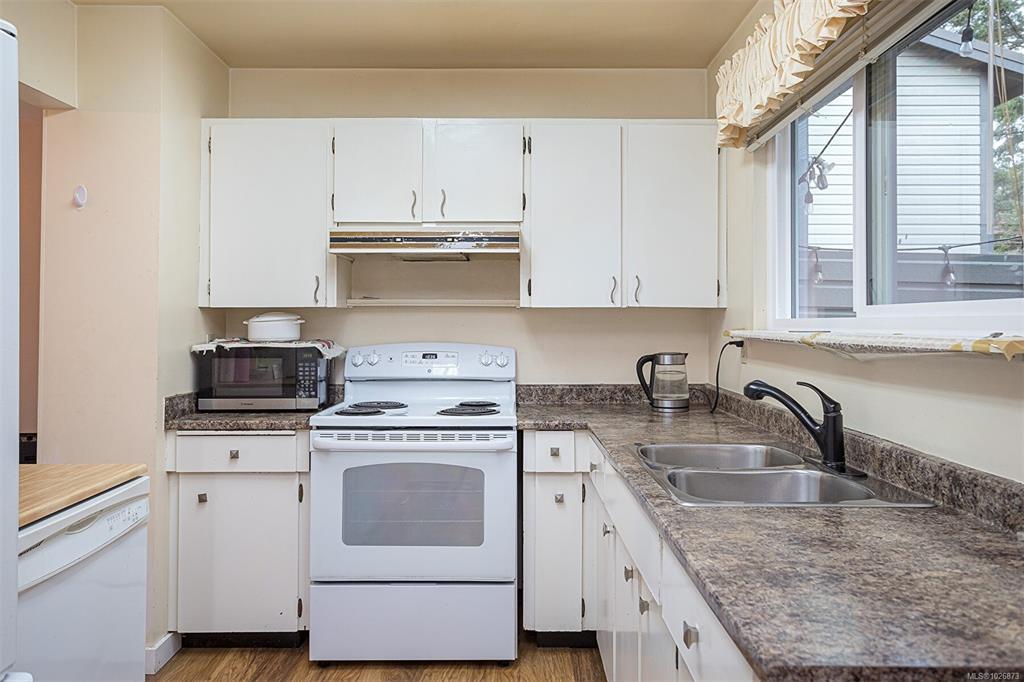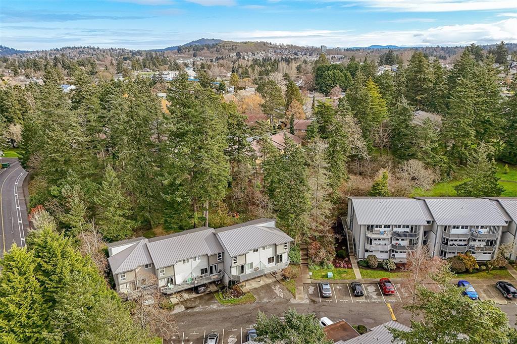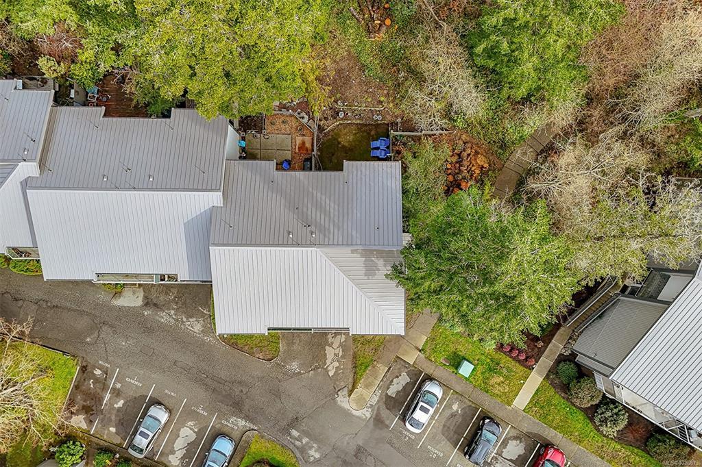 FAMILY-FRIENDLY END-UNIT TOWNHOME – Bright and spacious 1,700+ sq.ft. 4-bed, 2-bath home offering incredible value and room to grow. The sun-filled main level faces south and features an open layout with generous living and dining areas that easily accommodate large furniture, plus a large deck perfect for soaking up sunshine. The eat-in kitchen opens to a private patio with garden beds leading to a peaceful, park-like setting. Upstairs offers 3 bedrooms and a full bath, while the versatile lower level includes a large den or potential 4th bedroom. Step out to your private patio and garden beds backing onto peaceful green space. Kids will love the outdoor pool while you enjoy your park-like setting. The proactive strata have completed major updates, brand new metal roof & vinyl windows. Covered parking and storage included. Walk to schools, Tillicum Mall, Pearkes Rec Centre, parks, Galloping Goose & Colquitz trails. Pet- and rental-friendly strata. RARE FIND WON'T LAST—call now!