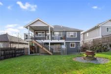 Located in West Ridge Trails close to all of Sooke’s Town Core amenities, this beautifully crafted 3BR + media room executive style home with 1BR suite makes the ideal family property! The main living area boasts a spacious & open floor plan w/ gleaming quartz counter tops & SS appl in kitchen, cozy gas fireplace w/ built in shelving in living area & plenty of space in the dedicated dining area for family dinners & gatherings w/ access to a massive partially covered 260sf deck. Down the hall you’ll find your primary bedroom w/ w/i closet & stunning 5 piece ensuite w/ free standing tub, 2 add'l great sized bedrooms, laundry room & main bath. A media room downstairs makes the perfect escape for teens & adults alike or incorporate it easily into the 1BR suite w/ 9’ ceilings, separate laundry, high end finishes & outdoor area for extra space & rental income! W/ plenty of living space, huge yard, ample parking and storage, this fantastic home is one to grow into for years to come!