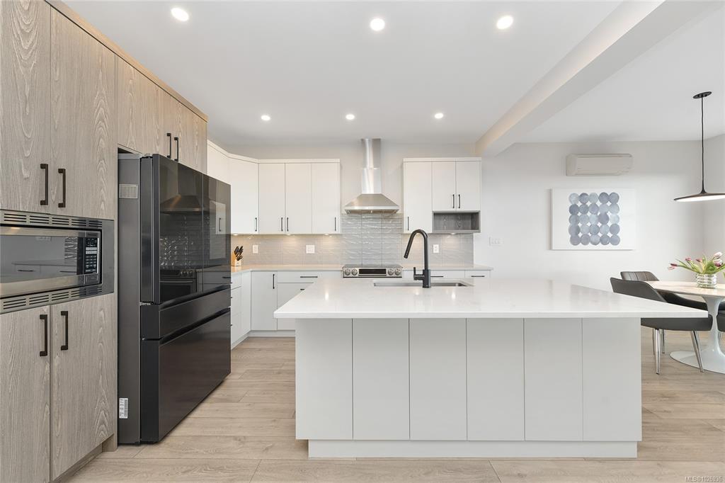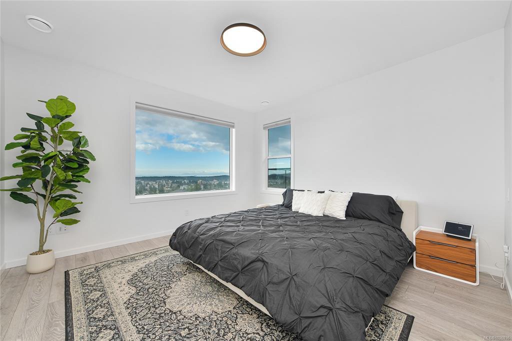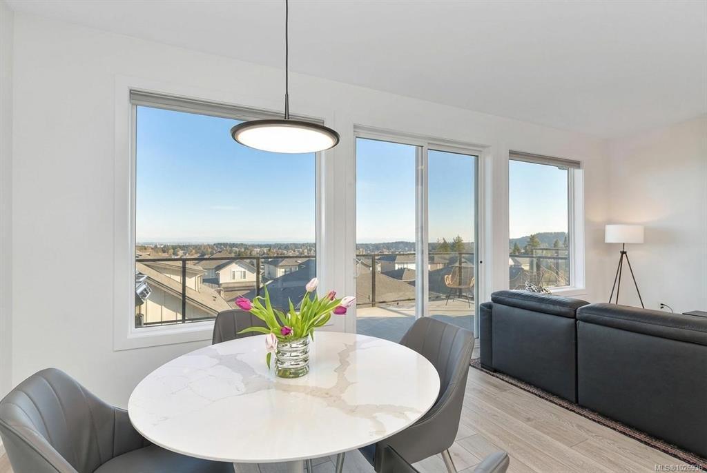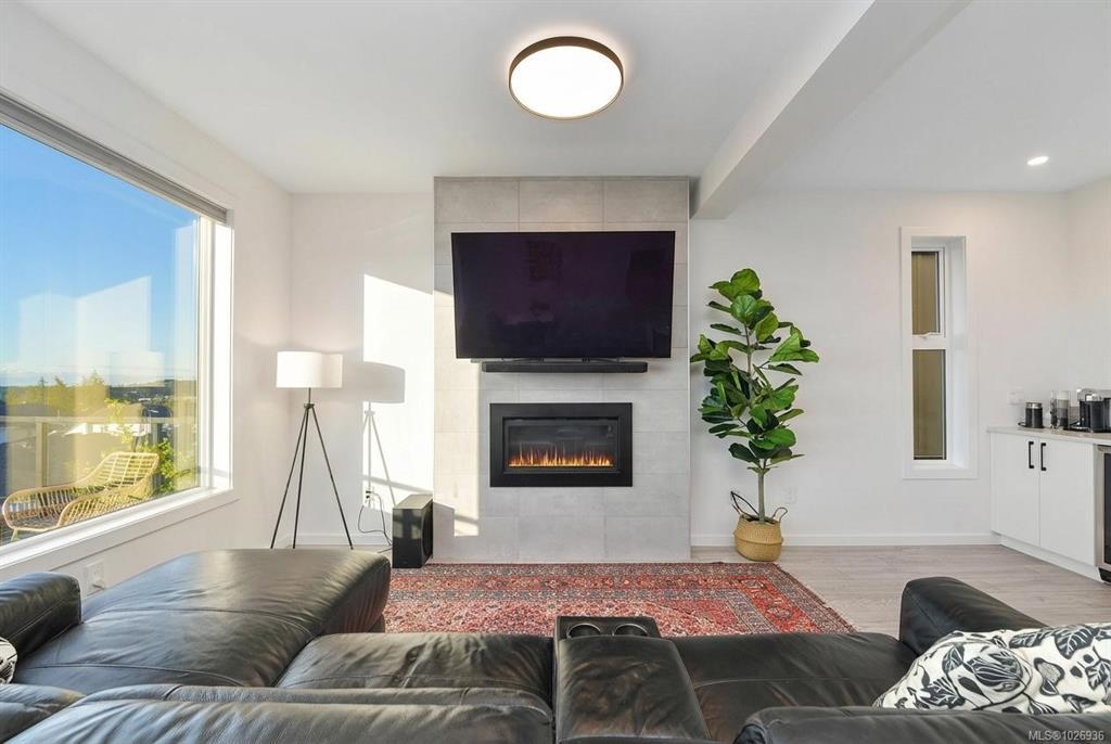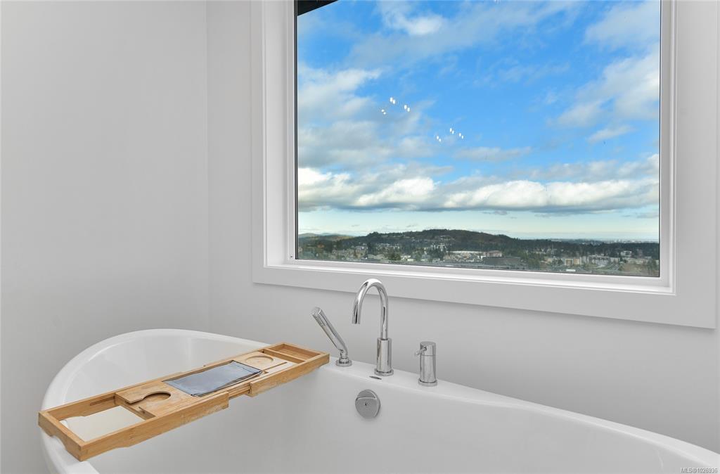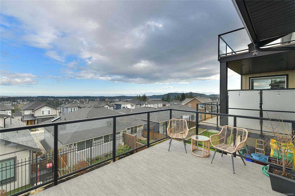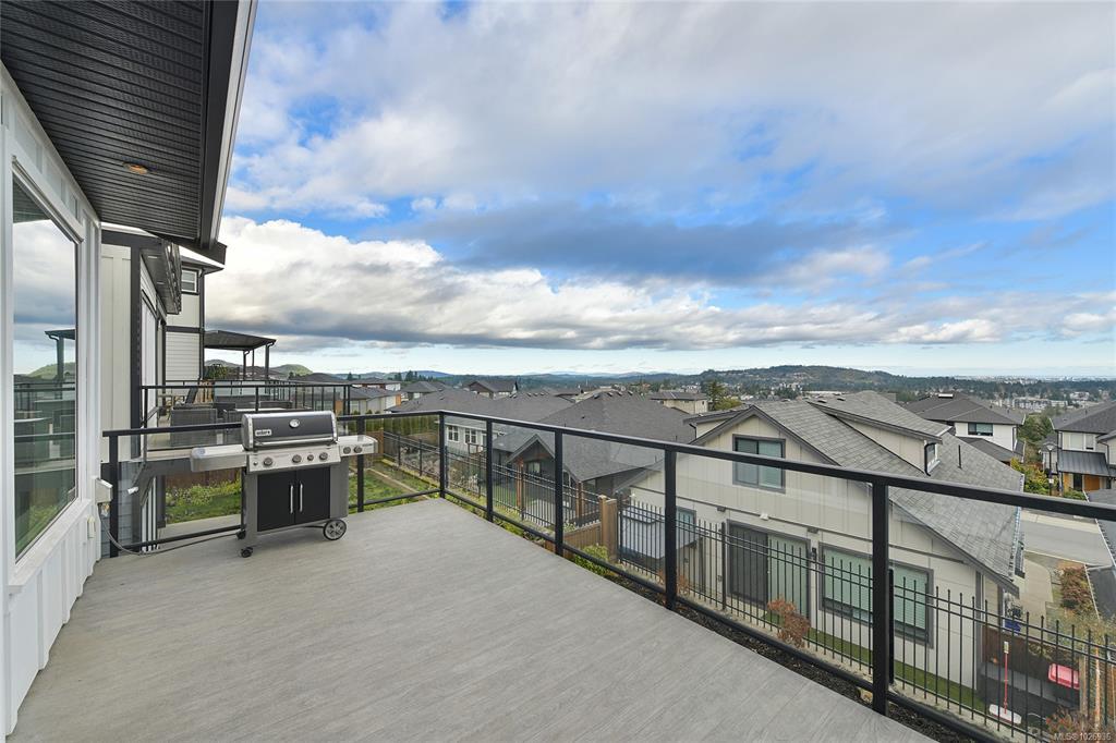 OH Sat 2-4 Perched high on Bear Mountain, this stunning home showcases panoramic views, exceptional privacy & seamless indoor-outdoor living. Bright open-concept main level features soaring 9’ ceilings, expansive windows, heat pump & beautifully appointed kitchen w quartz countertops, oversized island & abundant cabinetry — ideal for everyday living & entertaining. Striking linear gas fireplace w tile surround anchors the living space, which flows seamlessly onto the private deck, perfect for taking in the incredible surroundings. Spacious primary boasts breathtaking views, large walk-in & luxurious ensuite w double floating vanity, heated tile, soaker tub & walk-in shower. Two large bedrooms, full bathroom & laundry room complete the upper level. Downstairs offers exceptional flexibility w a legal 1-bedroom suite plus 4th bedroom for the main home, easily converted to create a 2-bedroom suite if desired. Nestled in Southpoint, one of Bear Mountain’s most desirable neighbourhoods.