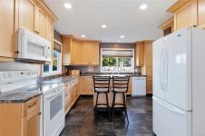 This comfortable and roomy home offers flexibility and easy movement throughout. With a fully mobility-accessible 2 bedroom in-law suite and an elevator connecting both levels, it’s well-suited for extended family. Enter through the spacious open-concept living room featuring beautiful wood floors, a pellet stove, and large west-facing windows that fill the space with natural light. To the right, you’ll find a large primary bedroom with walk-in closet, 2 additional bedrooms with generous closets, and a full bathroom. To the left, the dining area flows into the kitchen with abundant storage, covered deck overlooking the backyard, and elevator entry. The lower level includes its own open kitchen and living area with outside access, 2 bedrooms with accessible ensuites, an additional 3pc bath, storage, and laundry. A spacious backyard with extra parking and laneway access completes the setting, all in a quiet, friendly neighbourhood close to parks, shopping, recreation, and trails.
