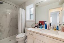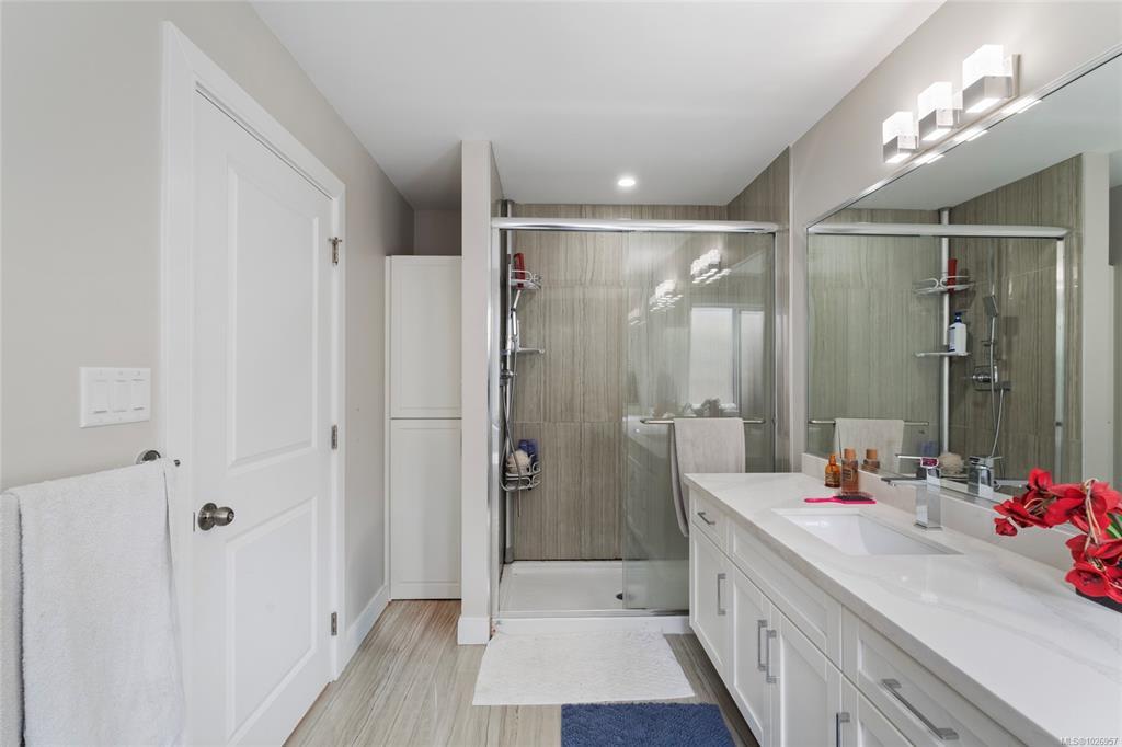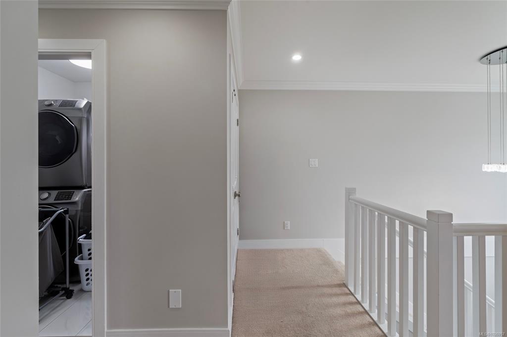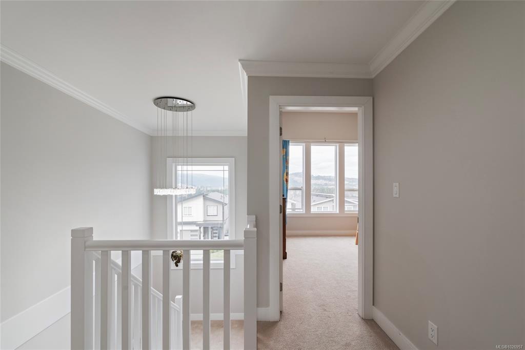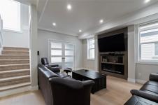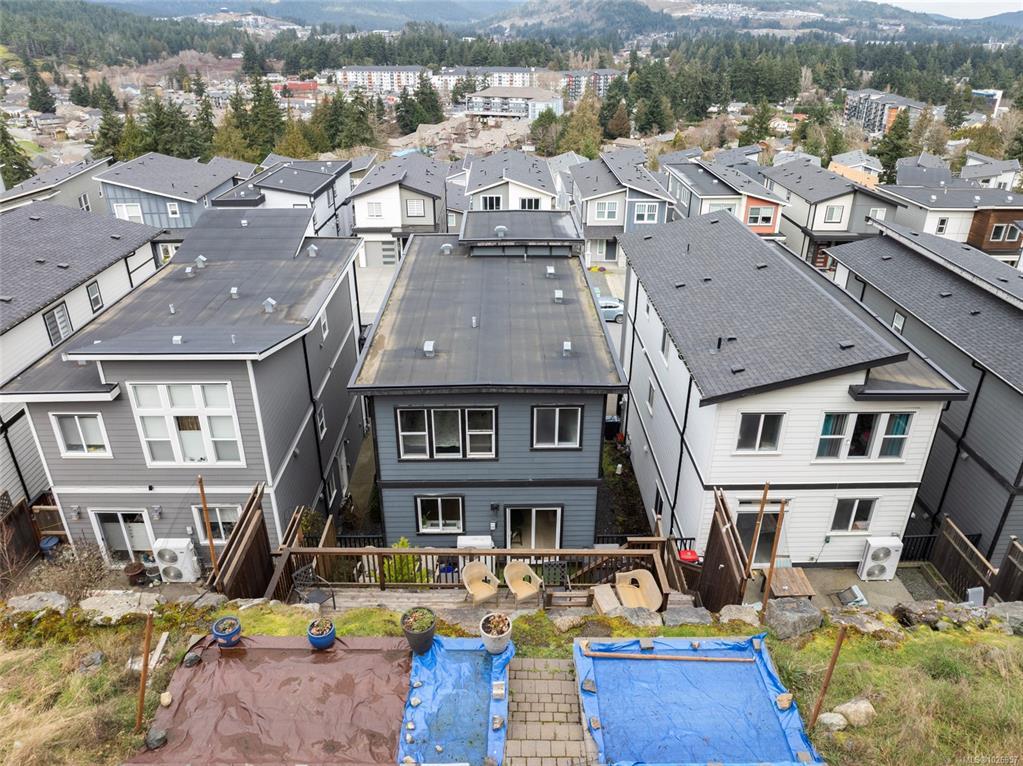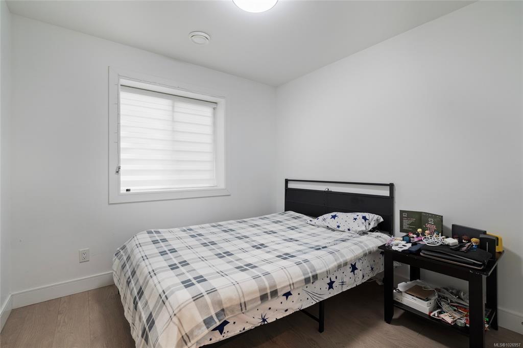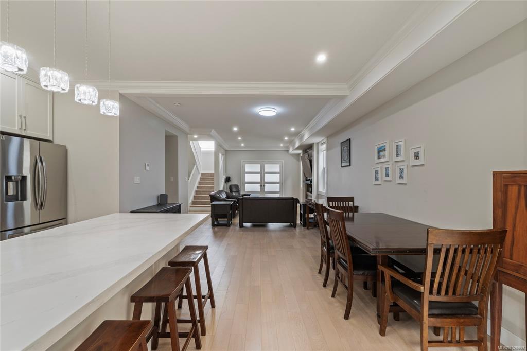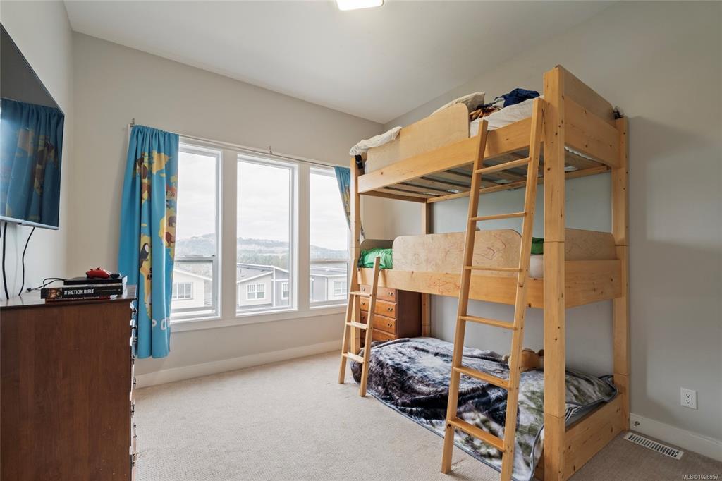 Open House Saturday & Sunday 1-2:30. Modern and thoughtfully designed, this quality-built 4 bed, 4 bath home offers over 2,400 sq ft of versatile living space in a desirable Westshore neighbourhood. The open-concept main level features beautiful flooring throughout and a contemporary fireplace adding warmth to the bright living room. The well-appointed kitchen includes quartz countertops, ample cabinetry, peninsula seating, stainless steel appliances, and modern lighting, with sliding doors leading to the outdoor space. A bright den and 2-piece powder room complete the main floor. Upstairs offers a spacious primary suite with walk-in closet and ensuite with double vanities and tiled shower, plus two additional bedrooms, full bath, and upper laundry. The lower level includes a self-contained 1 bed suite with private entry and separate laundry. Energy-efficient heat pump, single-car garage, and backing onto green space close to schools, parks, shopping, and all Westshore amenities.