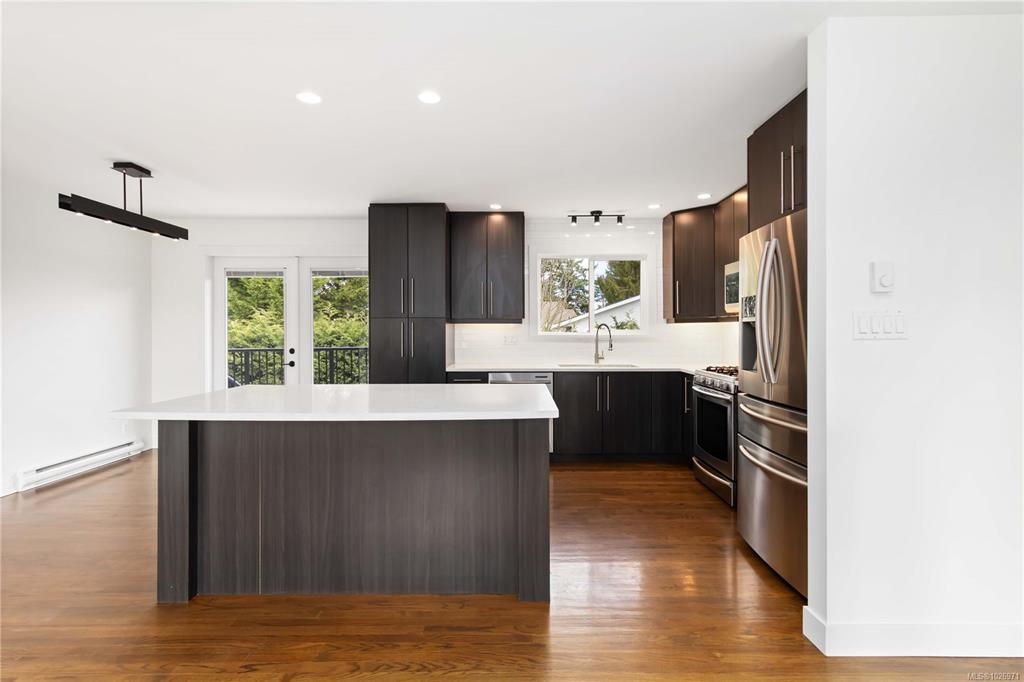 Open house Saturday February 28, 1-3pm. Amazing location! This renovated 5 bedroom, 2 kitchen home has an abundance of natural light and is move-in ready with tons of updates throughout. With an open concept main level living area, quartz counters plus an island perfect for hosting, entertaining and family gatherings. Off the kitchen, french doors lead to an oversized deck with tons of privacy and easy access to back yard perfect for kids and pets. Brand new main bathroom with curb-less shower with heated tile floors, cozy fireplace in living room and 3 bedrooms round out the main level. Downstairs you will find a 2 bed suite with 8 ft ceilings, gas stove, separate laundry and a large inviting entry with mudroom. Freshly landscaped and easy to care for yard with new fencing, separate backyard area for tenants/family and an oversized shed great for tools and storage. Fresh, paint, new doors, new lighting... this one shines. Steps to bus route, Centennial park shopping and the village!