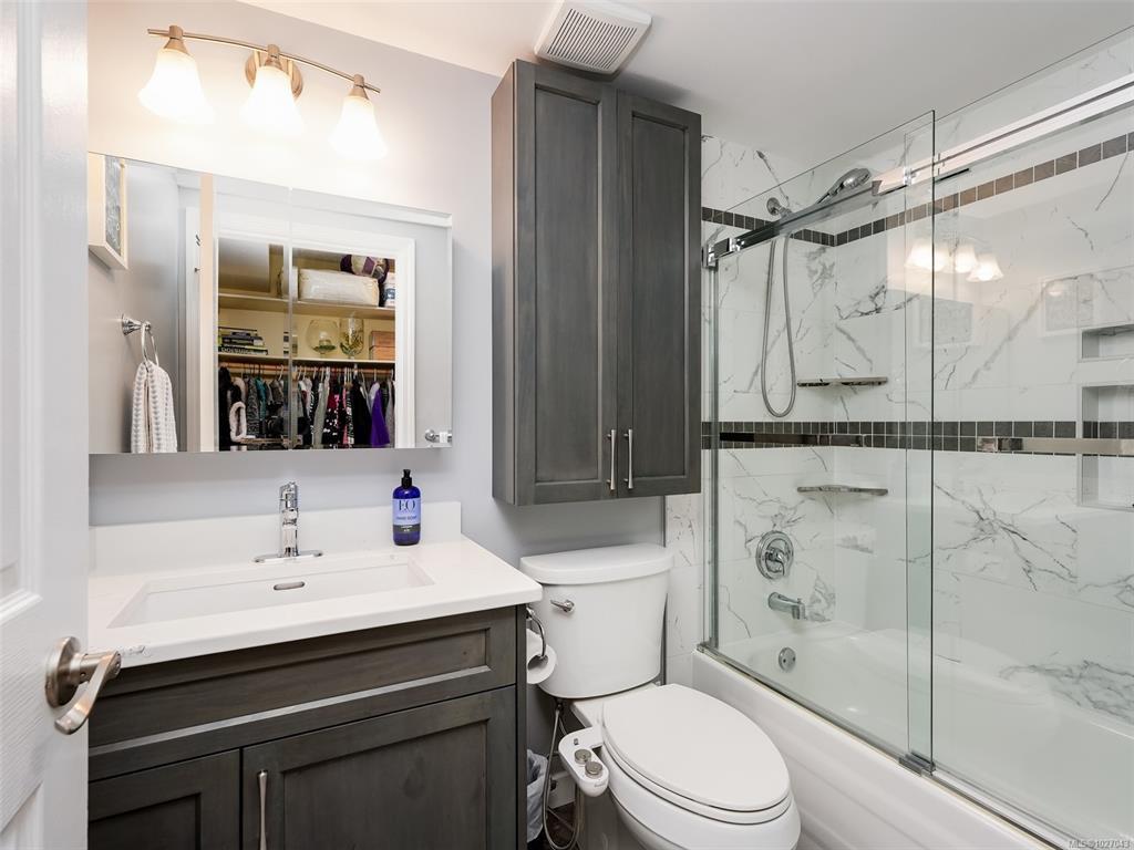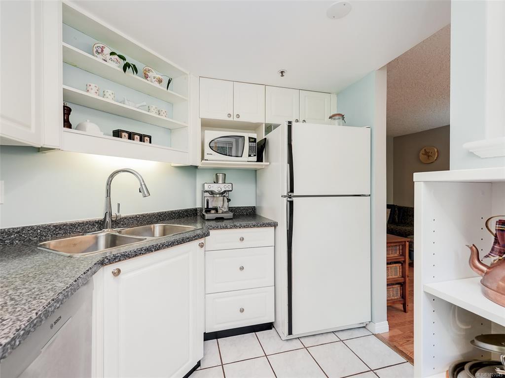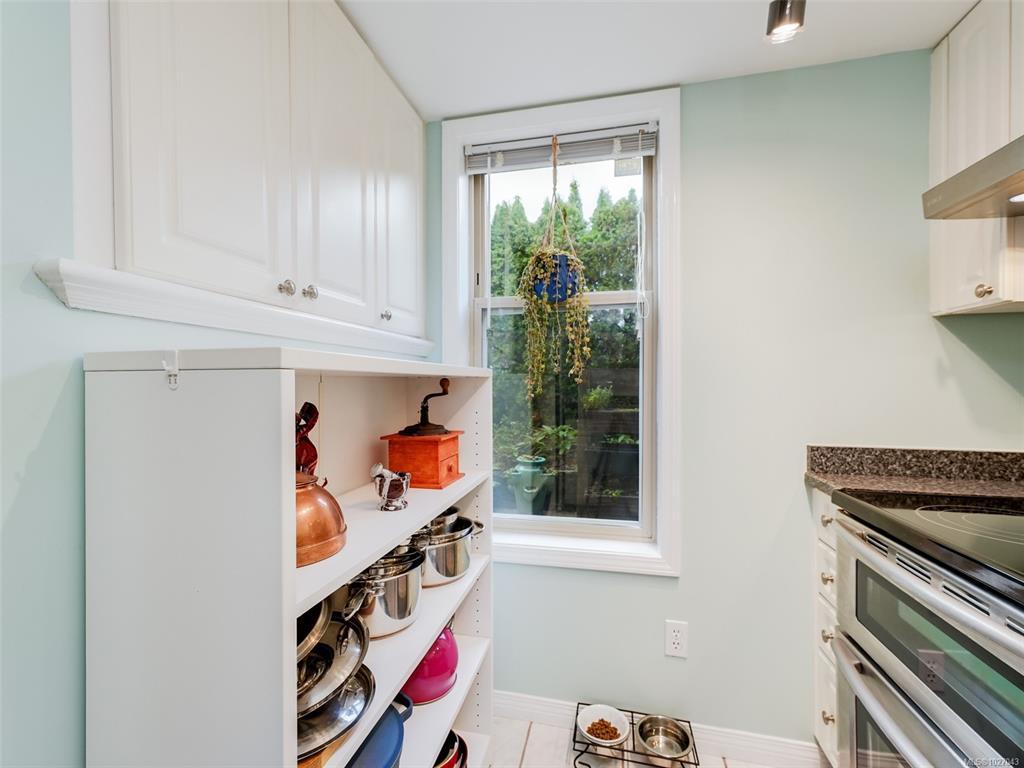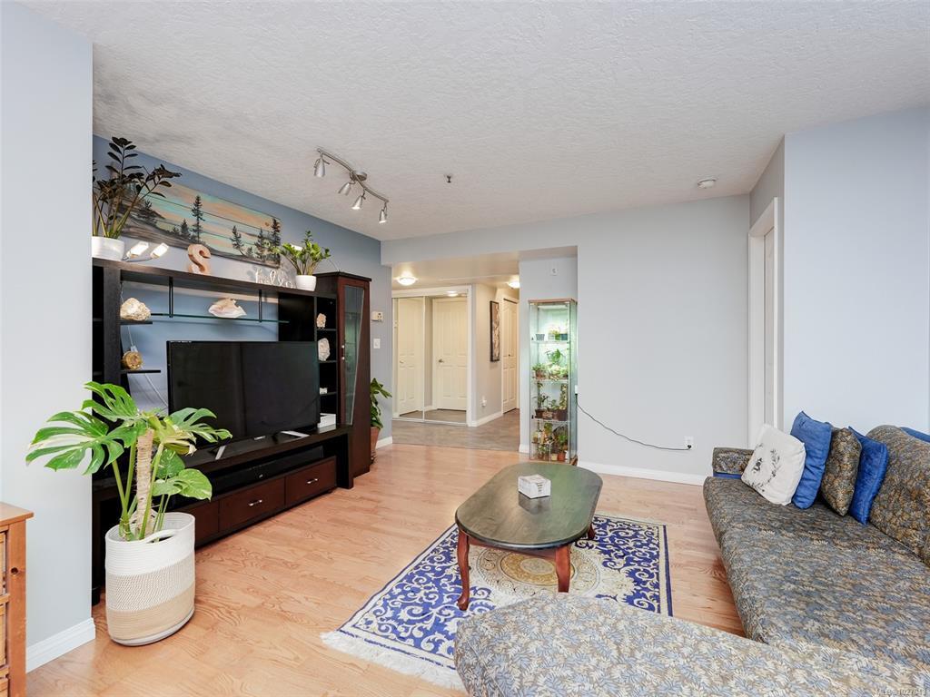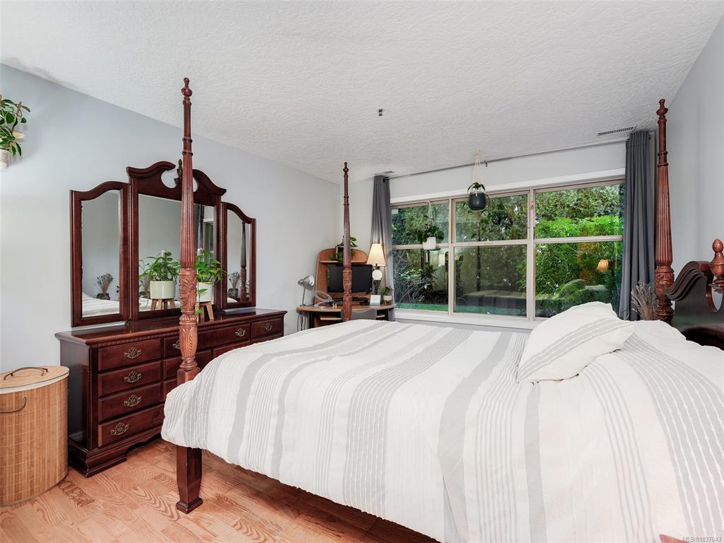 Open House Saturday 12-2. Wonderful garden level 2 bedroom home with 2 accesses to a very large sunny West facing patio in a quiet complex that allows 2 pets including cats & small dogs!! You'll love that it has over 1000 sq ft of living space with 2 updated bathrooms, cozy gas fireplace, laminate floors, updated light fixtures & 2 bedrooms with good separation (primary has excellent closet space & 4 piece ensuite bathroom). You'll also love the in suite laundry, extra storage, secure underground parking (1 spot included) & a guest suite right across the hall for overflow guest accommodation ($40/night). The walking score is fabulous here with parks close as well as a mall with theatres, banks, grocery store, library & rec centre. Buses are handy to take you downtown in minutes or shopping at Uptown. Perfect first home or place to downsize. Call today for a private viewing.