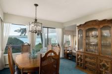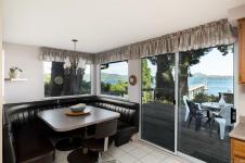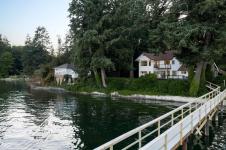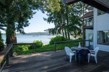 Tucked in the trees on a 0.86 acre waterfront lot, this retreat offers an unparalleled connection to nature with breathtaking ocean views & direct beach access. The seclusion is undeniable w/ winding paths, a canopy of trees & outdoor spaces that feel like your own sanctuary. Oversized windows flood the 2-storey layout w/ natural light, framing water views from nearly every angle. The sunken living room w/ wood-burning fireplace flows into the formal dining, open kitchen & built-in breakfast nook. Bay window benches are perfect for curling up with a book & taking in the seascape. Step onto the expansive deck for family dining or morning coffee surrounded by nature. Thoughtfully designed w/ dual staircases, the layout suits family or guests. The spacious primary suite includes a huge ensuite, walk-in closet & its own deck access overlooking the ocean. Coastal perks include a new dock w/ boat moorage, detached garage, charming cottage for guests or hobbies, large shed & generous parking.