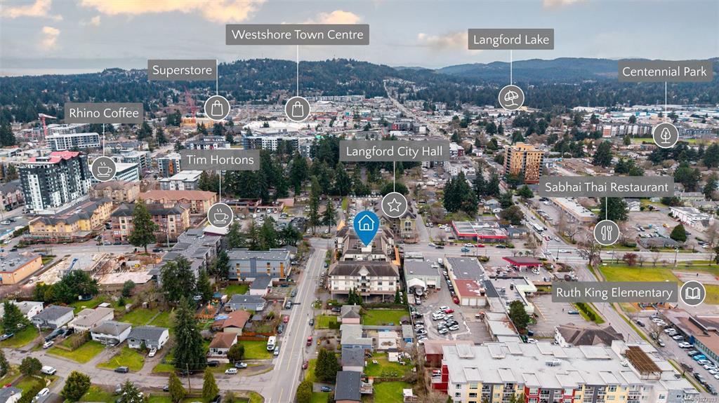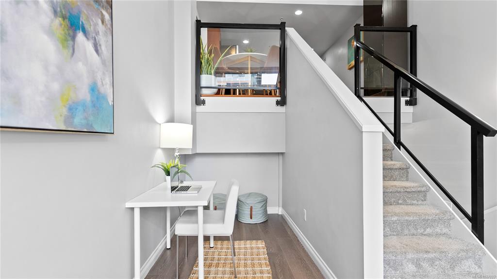 Open House Saturday February 28th, 11:30-1:00pm. A thoughtfully designed live-work home in the heart of Langford offering style, flexibility, and true walk-able living. The street-level entrance opens to a bright office or living space — ideal for entrepreneurs, remote professionals, or creatives. This 1 bedroom, 1 bath town home offers great options with live/work zoning. An east-facing patio extends your main level, perfect for morning coffee or evening relaxation. Upstairs, enjoy a modern kitchen with granite counter tops, stainless steel appliances, and a functional eating area designed for effortless entertaining. With transit, restaurants and recreation just steps away, convenience meets West Coast lifestyle. The standout feature -a private rooftop patio - your elevated retreat for summer evenings, hosting friends, or unwinding above the city. Check out the property feature sheet link to see the property website showcasing TWO videos with more details on the area and property.