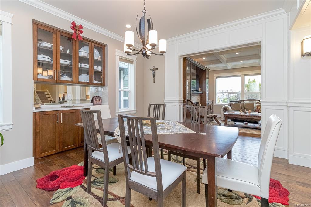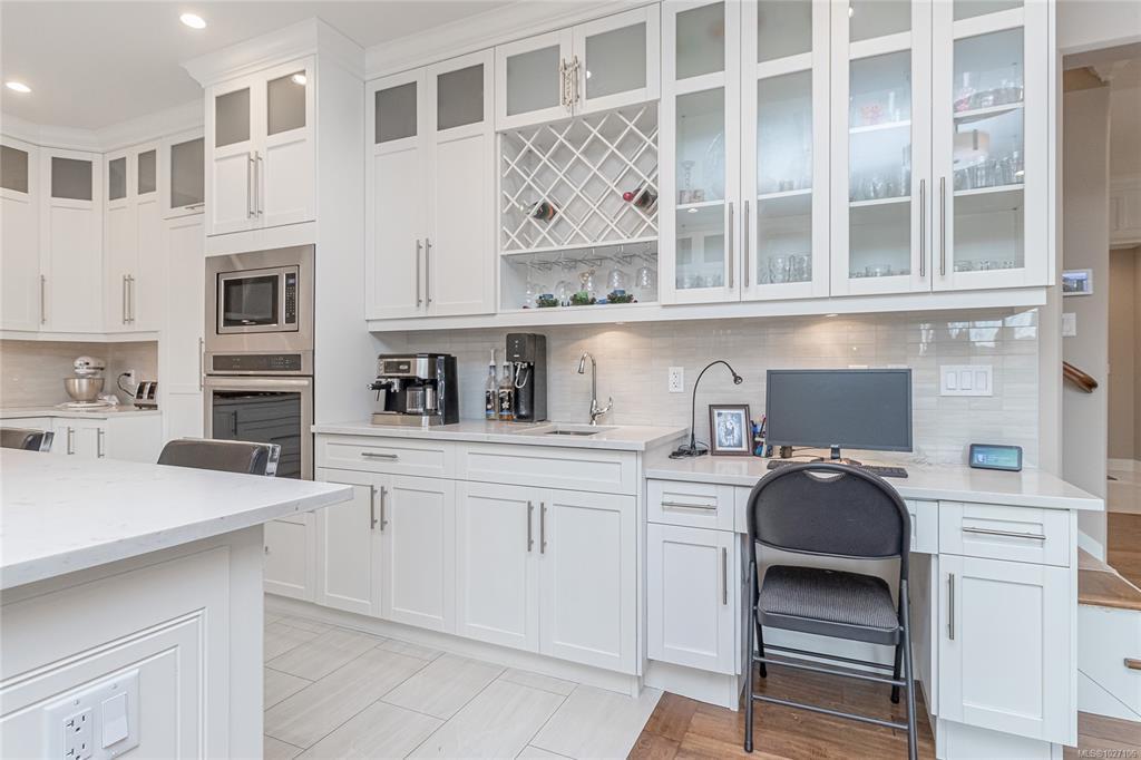 Executive and luxurious home perched at the top of World Class Bear Mountain Golf Resort. 4bed and an office, plus a legal 1bed suite above the garage. Gleaming hard wood floors, built in cabinetry, fireplace, coffered ceilings, wainscoting & panelled walls. White cabinetry kitchen w/large island, quartz countertops farmhouse sink built in wine rack, 5 burner gas stove, dual apron sinks & a massive hidden walk-in pantry. Upstairs find three LARGE bedrooms. Primary bedroom offers beautiful views, 2 oversized walk-in closets, built in vanity, dual sinks, large jetted soaker tub, walk-in rain hood shower, heated floors & quartz countertops. Suite is soundproofed w/its own side access & laundry set. Vaulted ceilings skylights heat pump crawl space security system hot water on demand extra storage & surround sound. The back yard has been tastefully landscaped, fully fenced w/ a dog run hot tub shed & covered BBQ shelter wired & heated roof. Exceptional location and exceptional layout!
