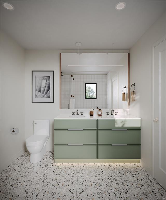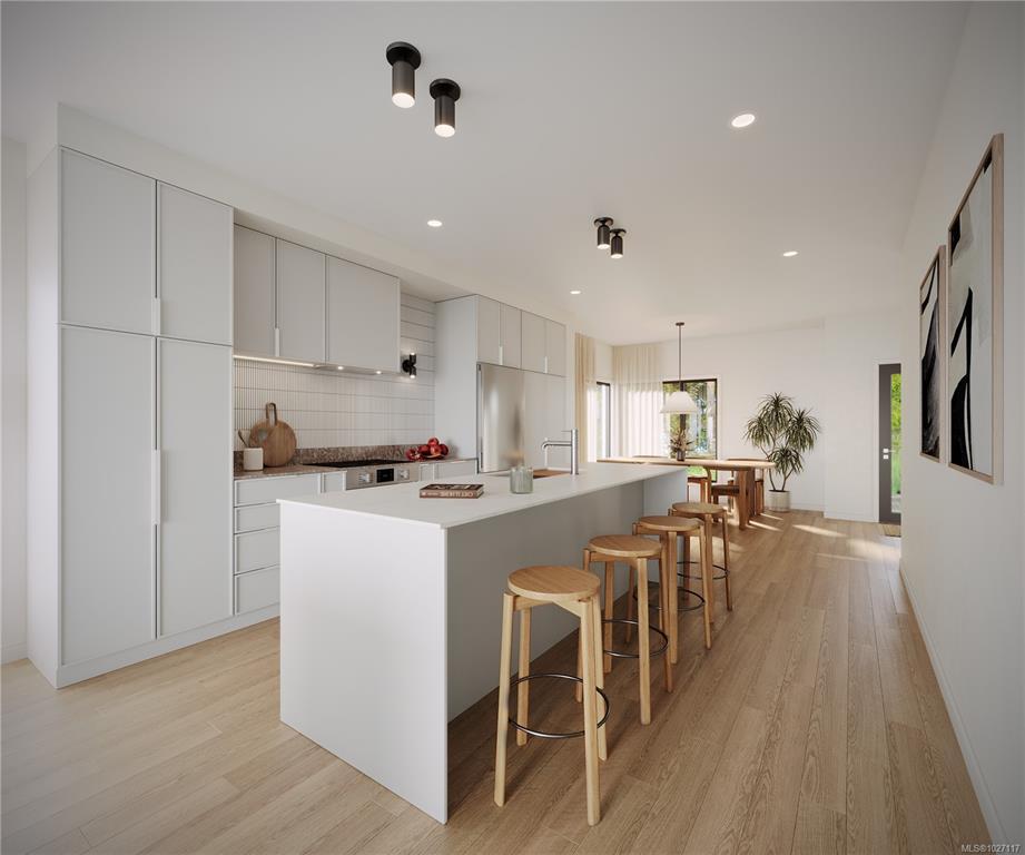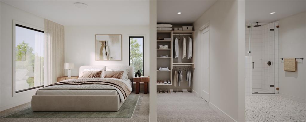 Experience Harper by Formwell, a noteworthy collection of coastal modern townhomes in the lush, tree-lined Cedar Hill neighbourhood. Situated at the end of a quiet cul-de-sac, this striking home embodies single-family-inspired design and generous indoor / outdoor living with a private and gated west-facing patio, separate balcony, and attached garage. The meticulously refined interior, designed by Bidgood, features an elevated kitchen with slim-shaker cabinetry, ample integrated built-ins, Caesarstone counters, and induction cooking by Bosch. Tranquility and convenience define the upper floor, with three generous bedrooms, a main bathroom, and laundry with a separate linen closet. The primary suite features a voluminous walk-in closet and a lavish ensuite with custom cabinetry and heated terrazzo tile flooring. The lower level is completed by a versatile flex room and additional storage, while an ERV system and A/C ensure year-round comfort. Completing this spring. Price + GST.