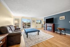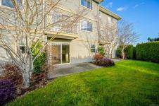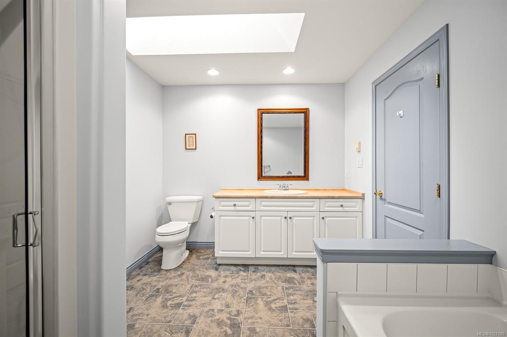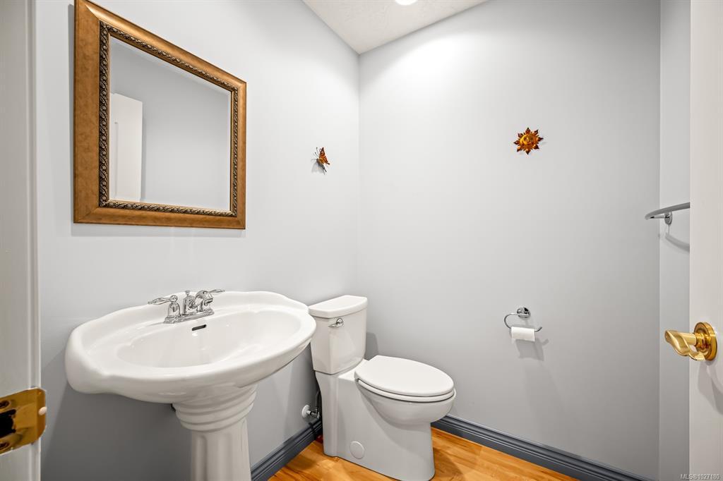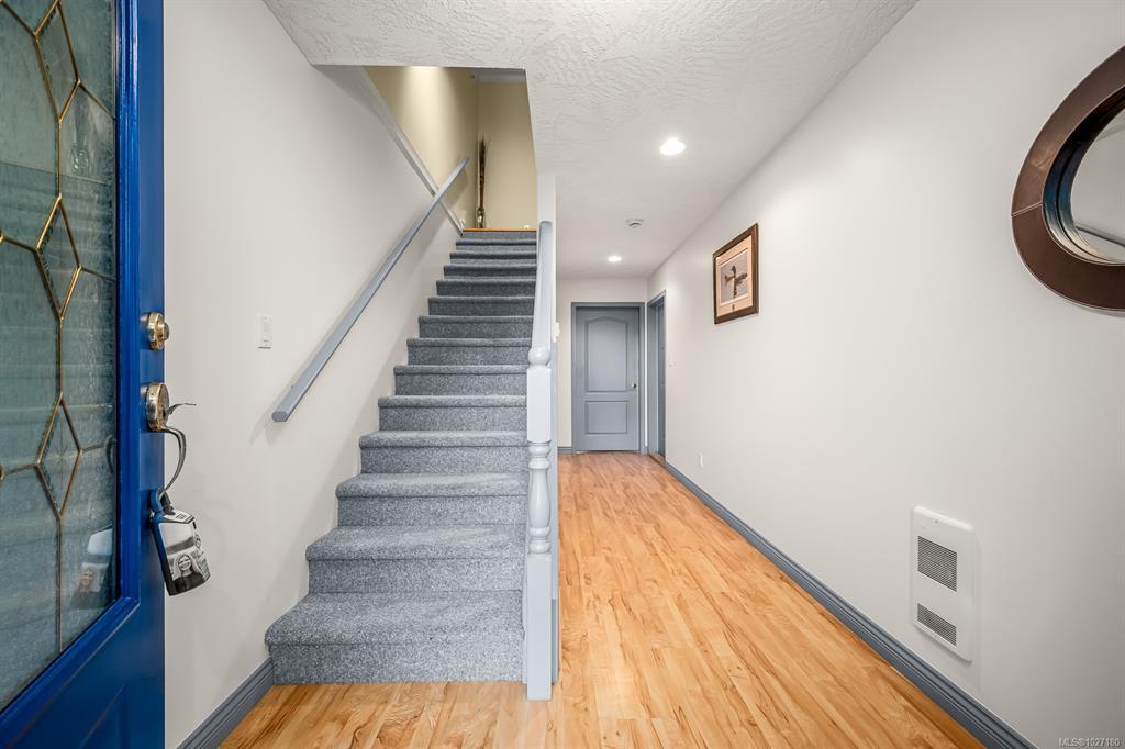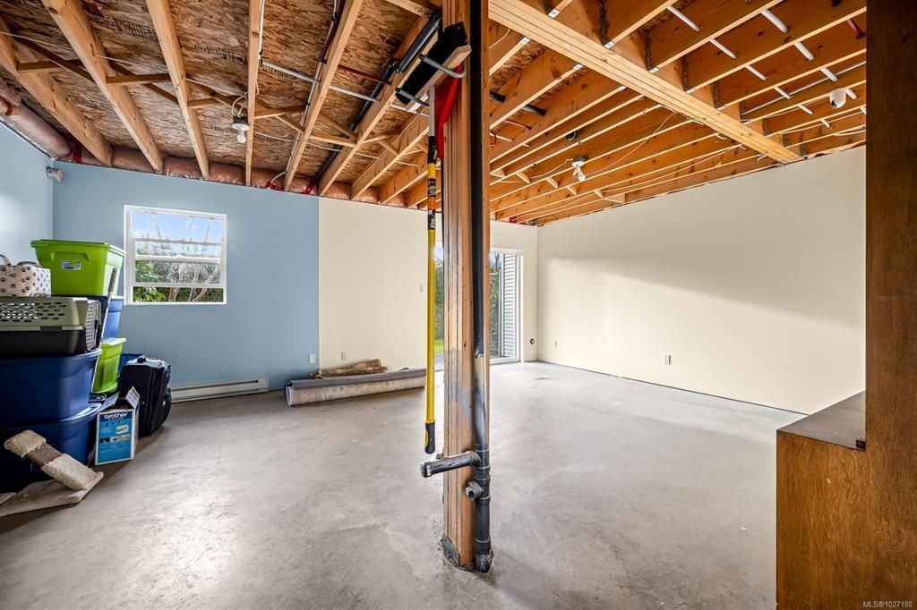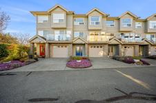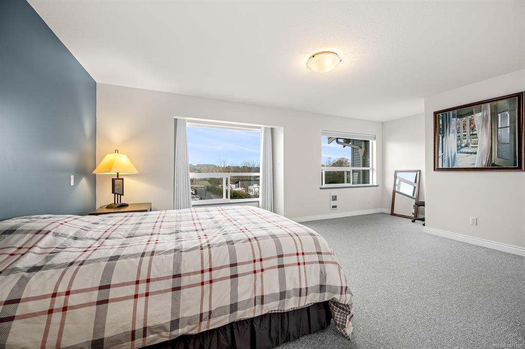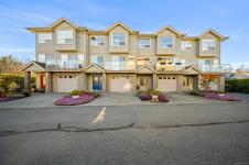 Ocean AND mountain views! Steps to the beach and the amenities of Courtenay Airpark - walking/cycling paths, trails, nature viewing, playground. Walk to shops, pubs, restaurants. This large 2,113 sqft 3-level townhouse is bright, move-in ready and one of the newest in the complex! A standout feature is the spacious unfinished 356 sqft room with patio doors to the lush backyard, roughed-in plumbing (potential 4th bath) and so many possibilities - bedroom with ensuite, media/games/rec room, office, gym, storage, teen/in-law space. Main level offers a large, bright living room with ocean-view deck, dining area, modern kitchen with island, plus rear deck with mountain views and sunsets! Upstairs is an oversized primary bedroom with ocean views, walk-in closet and spa-like ensuite, plus a second bedroom with mountain views and its own ensuite - ideal for teens, guests, roommates. Garage and driveway. Rare opportunity to own a large, versatile home in a super convenient location - book NOW!