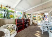 Welcome to 7-10980 Westdowne Road, a charming home offering ocean views, abundant natural light, and seamless indoor-outdoor living. Featuring a spacious kitchen and full dining room opening onto a new front vinyl deck, this home is perfect for entertaining. The living room extends to a covered sunroom for year-round enjoyment, while the secret rear garden and established landscaping create a private oasis. Updates include a heat pump, metal roof (approx. 8 years), vinyl windows, and refreshed shower. The practical layout offers two bedrooms, 1.5 baths, laundry, and a skylight in the bath. A large workshop and additional storage provide space for hobbies and projects. With its lovely feVacel, generous floorplan, and connection to the outdoors, this property is a true gem in the community.
