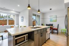 NO GST! This like-new 3 bedroom, 3 bathroom, 1675 sqft modern townhome offers main level living space with covered patio and private fully fenced backyard. Perfect family layout with high-end finishes; 9ft ceilings on Main, wide plank flooring, quartz countertops in Kitchen, large Island, Walk in pantry, Stainless steel appliances, Gas furnace w/ Heat Pump & A/C. Upstairs there is 3 large bedrooms, 2 baths, & walk in laundry room. Large primary bedroom with walk in closet and a 3pc ensuite. Built with energy efficiency in mind, conveniently located to schools, Beaver Lodge Forest Lands, ERT trail, recreation, & shopping amenities.