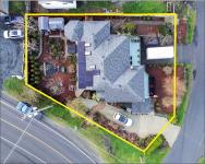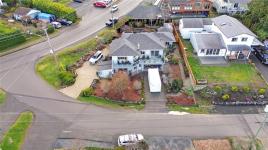 Downstairs offers an in-law suite or adaptable flex space - super convenient. RV parking, 2 garden sheds & 9 fruit trees create a backyard oasis. A 5-year-old roof adds further peace of mind. Centrally located and within easy walking distance to amenities including a pub, grocery store, and restaurants, this is a rare opportunity to enjoy space, views, updates, and convenience all in one package.