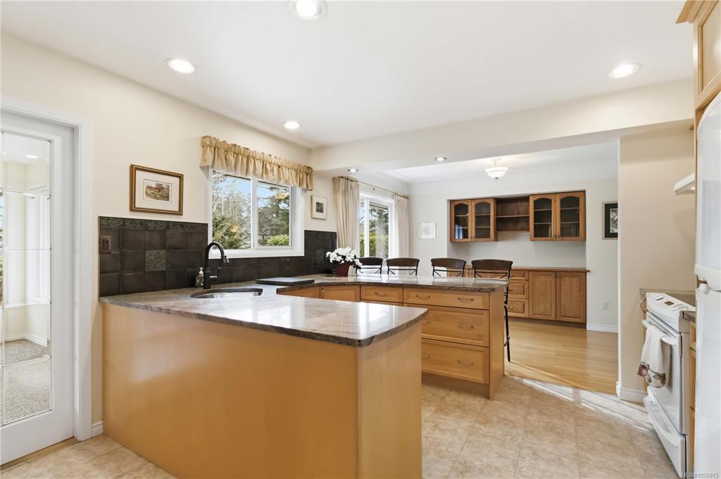 O/H SAT/SUN 11:45-1pm. Virtual OH, HD VIDEO, 3D WALK-THRU, PHOTOS & FLOOR PLAN online. Just 30 seconds from Saxe Point Park & the waterfront, first time on market in 30+ years, this 4-6 bdrm, 3 bth 2,800+ sqft home is a rare opportunity in one of Victoria’s most sought after seaside pockets. Spanning 2 levels, the flexible layout suits families, multigenerational living, or work from home needs. Features include a large sunroom overlooking the grounds, primary bdrm w/ensuite, beautiful hrdwd floors, gas furnace & cozy FP, and pride of ownership throughout. Nicely updated, it also offers two kitchens with lower level kitchenette and easy expansion potential. Enjoy the sunny south facing fenced backyard, interlocking brick driveway, and generous 9,200+ sqft lot. Vacant, easy to show, quick possession possible.