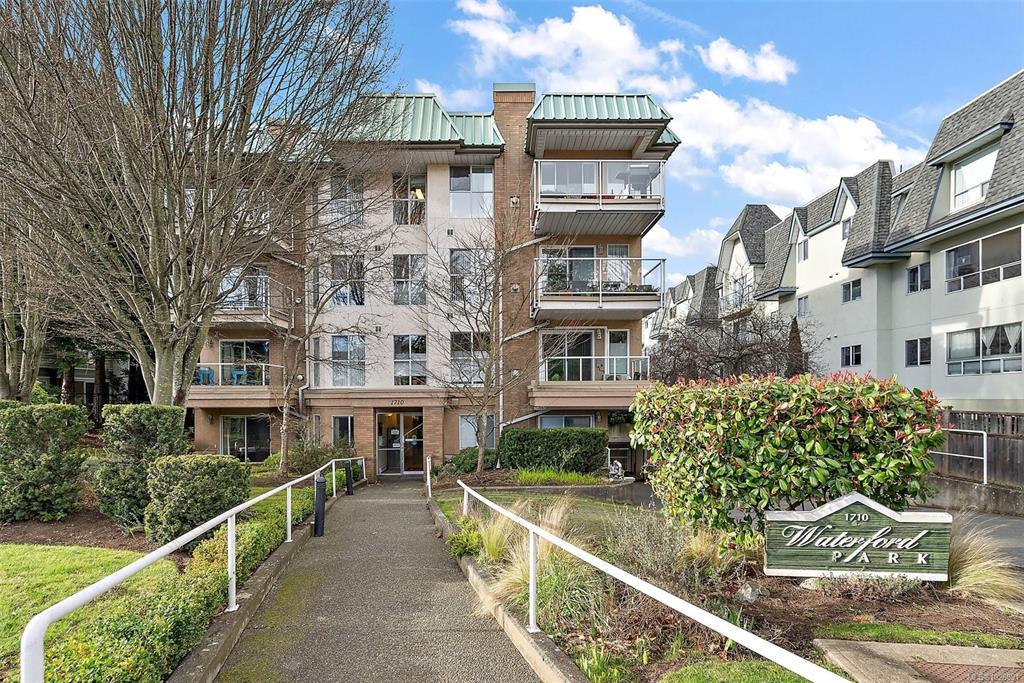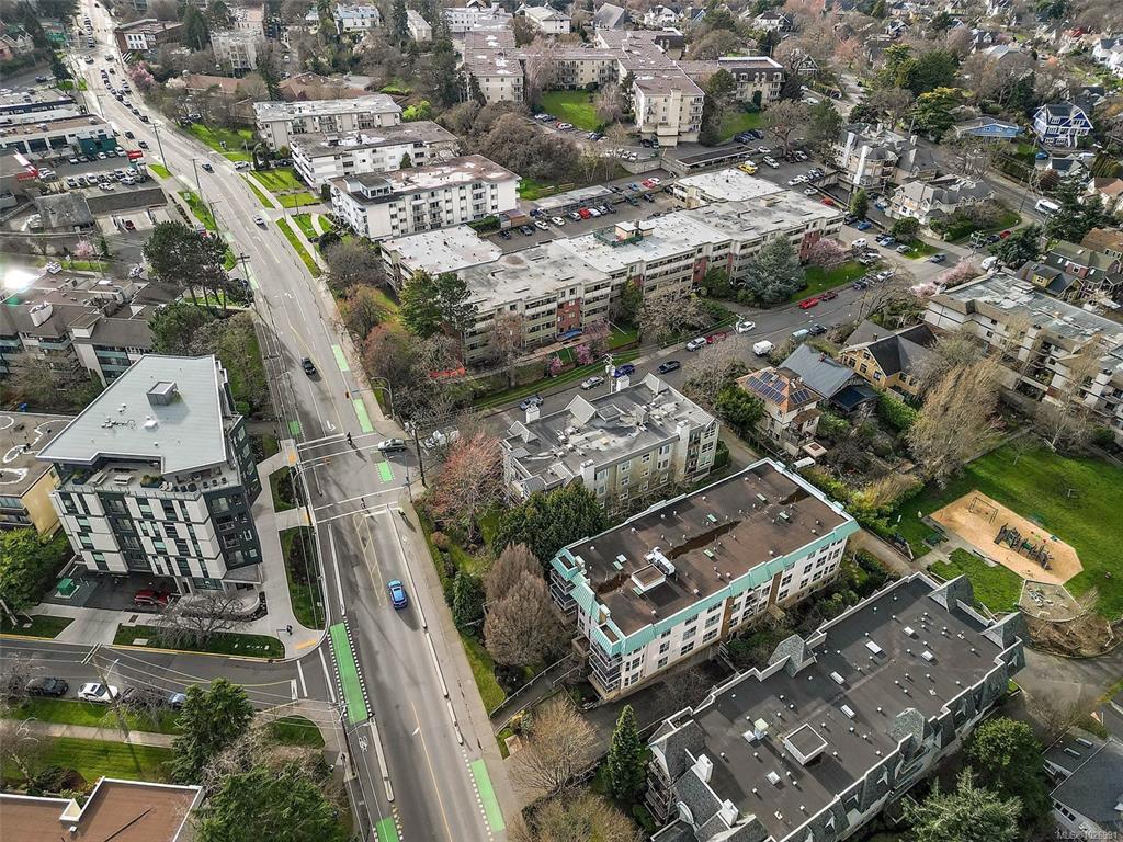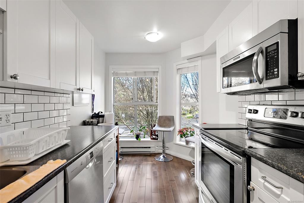 Invincible location in the desirable Jubilee area! This fully furnished 2 bed, 2 bath bright corner suite offers a well-designed layout, exceptional privacy, and unbeatable central convenience. Meticulously maintained and refreshed with new hardwood flooring in the main living areas, fresh paint, modern baseboards, and an updated kitchen with new counters, stylish cabinetry, subway tile backsplash, and new appliances. The sunny living room features a cozy gas fireplace and access to a private covered balcony overlooking lush greenery. The spacious primary bedroom includes its own ensuite, and both bathrooms are full 4-piece. In-suite laundry, secure underground parking, visitor parking, and separate storage included. Pet-friendly, well-managed building steps to Royal Jubilee Hospital, Oak Bay Village, Urban Grocer, parks, schools, rec centre, and downtown.