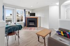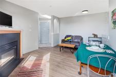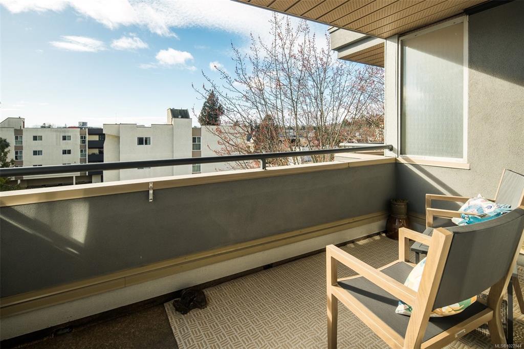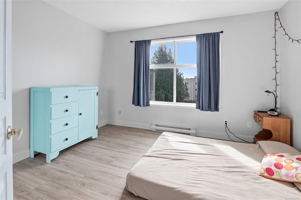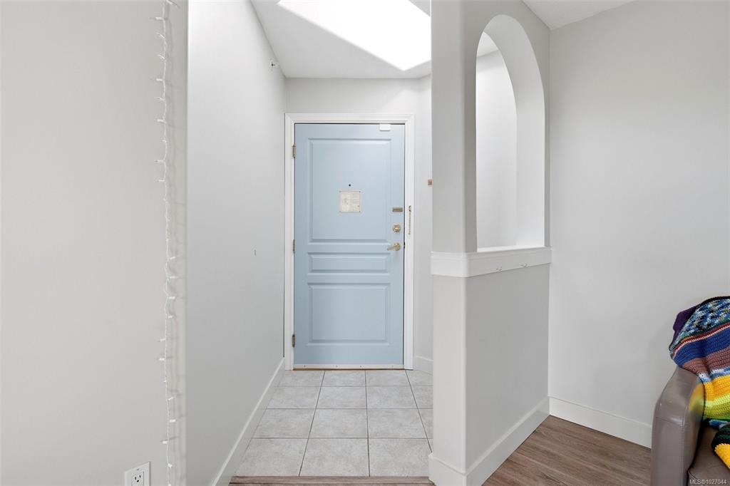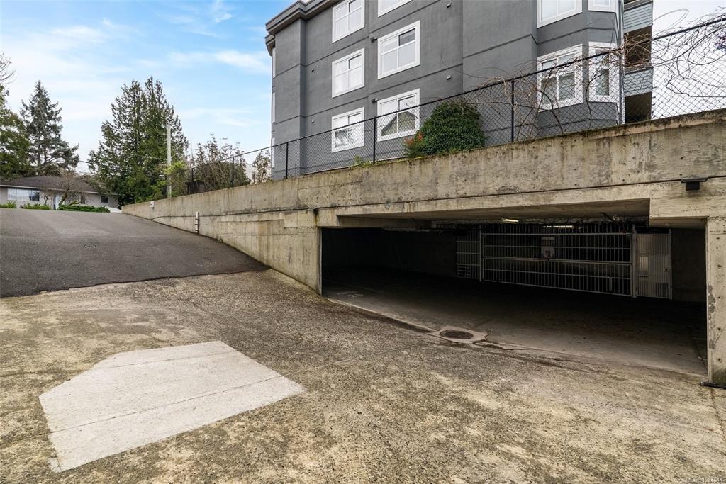 Top-floor, south-facing, beautifully refreshed, and move-in ready. This bright one-bedroom has been updated with new flooring, fresh paint throughout, and a fully refinished bathroom. The kitchen offers loads of cabinet and counter space and overlooks the cozy living room, complete with a gas fireplace featuring a modern tile surround and a comfortable south-facing deck. Two skylights and large windows bring in fantastic natural light. In-suite laundry, secure underground parking, and separate storage complete the package. Well-run, well-maintained strata in a solid building, with a new roof and skylights already approved and paid for. Close to Cedar Hill Rec Centre, Tuscany Village, UVic, and transit.