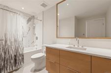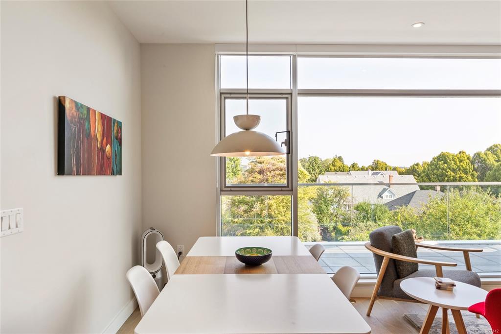 Welcome to this third-floor corner residence in one of Victoria’s most desirable neighbourhoods—steps to Oak Bay Village and Jubilee Hospital. Built by Jawl Residential, this boutique steel & concrete building offers quality construction and peace of mind. This 2 bedroom, 2 bathroom home sits on the quiet, north-facing side of the building, offering cooler summer living and a serene outlook. The standout feature is the exceptionally long private deck, perfect for morning coffee, evening relaxation, or entertaining. Inside, the modern kitchen is equipped with Fisher & Paykel appliances, a Wolf gas cooktop, and quartz counters. Comfort is enhanced with an energy-efficient heat pump, heated bathroom floors, and high-performance windows with motorized blinds. Building amenities include rooftop patio, dog wash, car wash, and bike room. A quiet, elegant lifestyle awaits at The Redfern.