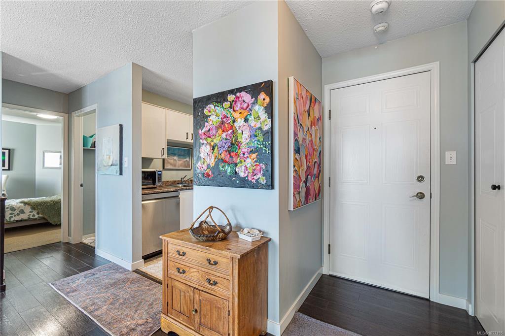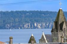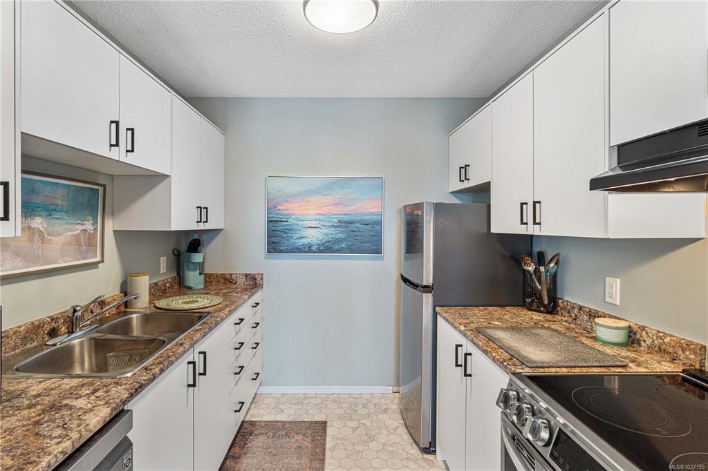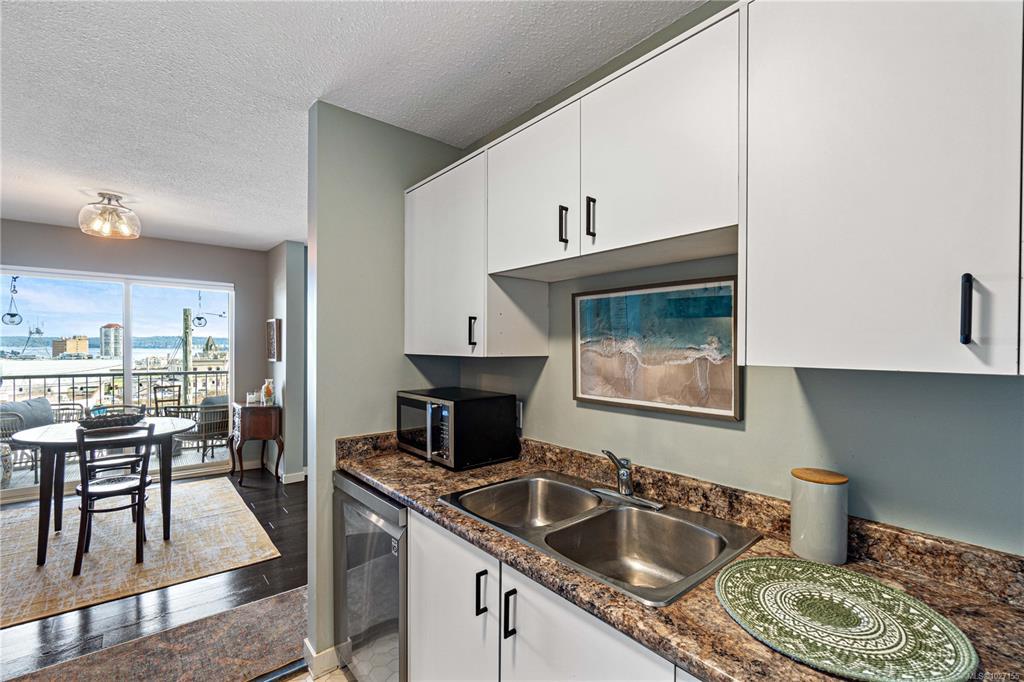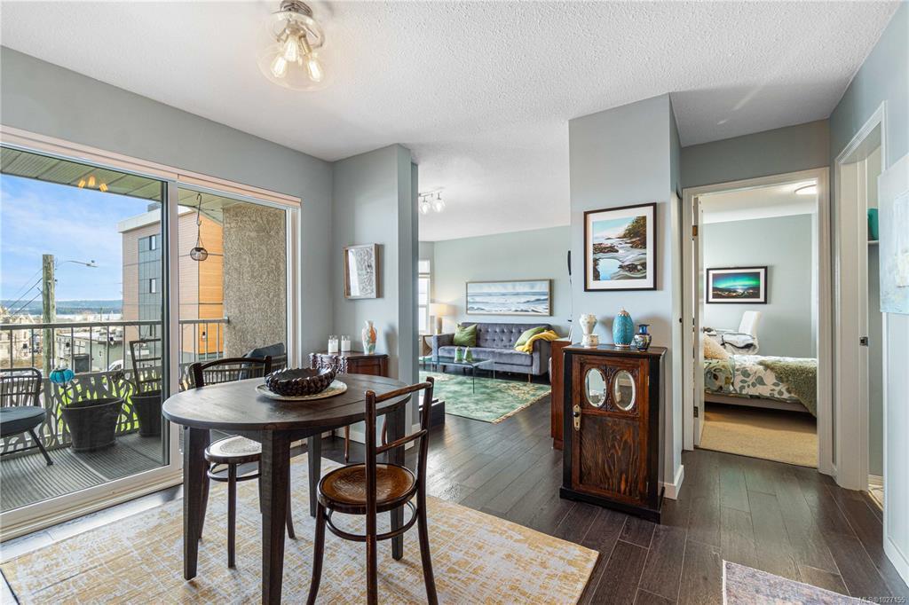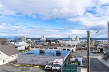 This is your chance to wake up to breathtaking top-floor ocean and city views in this beautifully remodelled 2-bedroom, 1-bath condo offering 863 sq ft of refined living in the heart of Nanaimo’s popular and charming Old City area. Sunlit main living areas capture stunning ocean and city views, while rich colours and quality flooring create warmth and style throughout. The updated kitchen features abundance of counter and cabinet space, perfect for everyday living and entertaining. The spacious primary bedroom offers a spa-like 3-piece bathroom, creating your own private retreat. A generous second bedroom adds flexibility for guests or a home office. Enjoy a separate dining room and a large living room with feature electric fireplace, plus access to the deck to enjoy the views. Stroll along tree-lined streets to the seawall, float plane, shopping, popular cafés, and dining—this is coastal living at its finest. Size is approx., from strata plan