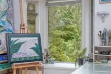 This is an extraordinary, 8.7 acre forested lakefront estate w/ 240 ft of waterfront, w/private dock on Quennell Lake. This estate has a 2219 sqft custom-designed home, 2 bdrms & a studio, which could serve as a 3rd bdrm. There are 2 full baths, open-concept living, family room & sunroom, w/ views of the stunning surroundings. There is Natural light, treetop & lake views from every window thanks to the architectural design. Floor level dining room windows offer a unique view into a serene fishpond. This home is equipped w/radiant heating powered by a wood- fired system, w/ electric backup & heat pumps for efficient heating in winter & cooling in summer. The private well provides 3 g/min & a new Bio-filter septic system. 2 fireplaces add to the rustic charm. A 1930’s log cabin overlooks the lake, features a loft, stained-glass windows & a covered veranda that invites relaxation & lake views. The property is zoned for 2 homes & offers the perfect combination of peace, privacy & nature.