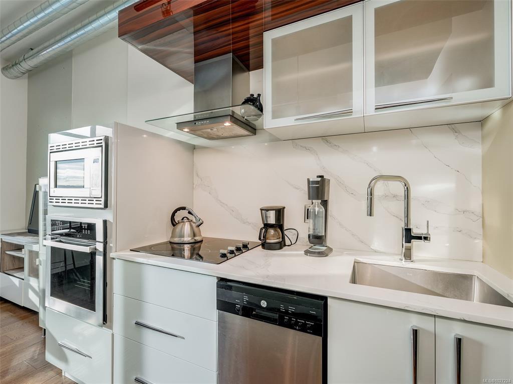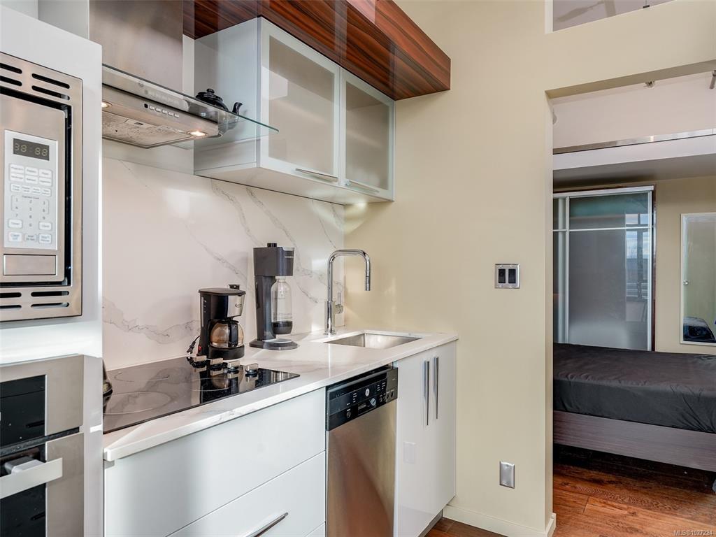 Experience downtown living at its finest with Jukebox, a stylish 2019-built steel and concrete condo by Mosaic Properties Inc. This 1-bedroom home is bright and modern with south-facing exposure, and the features are stunning: 10-foot ceilings, hardwood floors, quartz countertops, soft close cabinets, stainless steel appliances and in-suite laundry. Also, heating and hot water are included with the strata fees and there is a separate storage locker. Located in the vibrant Harris Green district of Downtown Victoria, the location is extremely central and within walking distance to so many amenities including London Drugs, Bin 4, restaurants, cafe's, shopping and so much more. With a walk score of 98, a bike score of 98 and a transit score of 89 there are so many convenient options for green transportation. Also, the building has a fully equipped gym with landscaped meditation garden and is pet friendly and rentable. Book a viewing today!