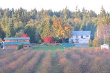 Turn Key 13 Acre Saskatoon Berry Orchard in Cobble Hill. Take control of your destiny and escape to your own business on a private paradise with this breathtaking property, offering the perfect blend of modern luxury and rustic charm. Whether you're looking to run a business or enjoy privacy, this property has it all. The well built home features 4 beds, 3 baths, and a massive deck with a peaceful, park-like backyard. The land is fully fenced and includes a small barn with electricity and water. A second modern home offers 2 beds and 2 and a half baths, with a gas fireplace and large garage. Property features high-speed internet, a high-yield well, and is in the ALR. A serene pond lies at the back of the property. Enjoy picking your own blueberries, cherries, pears, and apples. The 7 acre Saskatoon Berry orchard and farm store, with a fully inspected commercial kitchen, is busy year round and generates enough income to support a family—making working away from home a thing of the past.