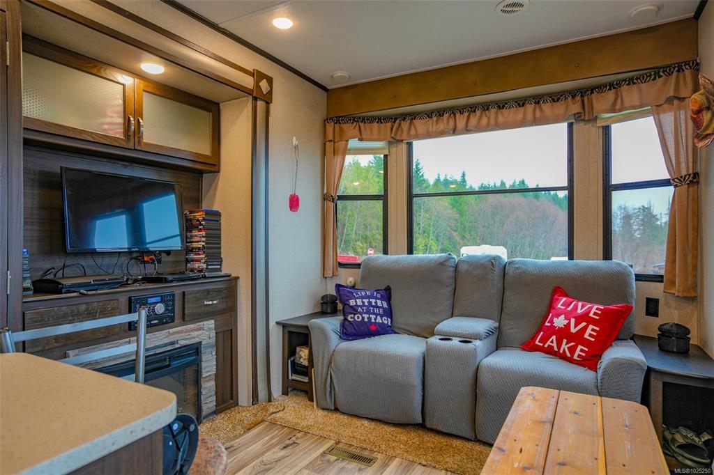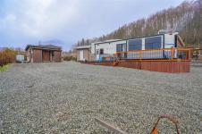 Relaxing summer living awaits in sought-after Salmon Beach. Set in a quiet, low-traffic location, this private retreat captures beautiful mountain views and the relaxed vibe of a true West Coast escape. The property comes fully equipped for effortless seasonal use, including a 2018 41-ft Residence trailer with loft, cedar deck, and much of the furnishings, bedding, and kitchenware included. Serviced with a water cistern, septic holding tank, and a powered station with multiple outlets including 220V,. Two sheds: one featuring a toilet, sink, bunk beds, fridge, and workshop space; the second serving as a pump house with an almost-complete shower stall plus washer/dryer hookups. A portable garage/shed ideal for storage or gear. Stroll downhill to the beach, private boat launch or enjoy tennis courts, playground, and easy access to world-class kayaking, fishing, surfing, and diving.