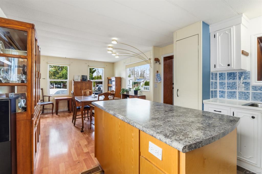 Welcome to the desirable Silver Park, now Alderlea Estates (under new ownership of Compass Communities) who may cooperate with banks for mortgages!! This spacious lot hosts a well kept 1 bed+ / 1 bath home with washer/dryer featuring open concept kitchen/dining area with up-dated large windows & lofted living room addition. Excellent quality metal roof installed in 2024. Throughout the rest of the home, another loft area could act as 2nd bedroom & extra storage area. Complete with heat pump, large closet/office, bonus indoor workshop/hobby room closed off from the rest of the home with ample lighting & outlets. Established fruit trees including cherry, peach, 4 varieties of apple, blueberry bushes, raised garden boxes & the quality shed in the backyard includes ventilation, fan, lighting & electrical. This home also features ample parking & a covered deck on the front to enjoy the evening sunsets. All measurements are approximate- Buyer should verify if important.