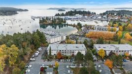 Discover this pristine 1-bedroom, 1-bathroom condo offering nearly 800 sq. ft. of bright, comfortable living in Marina Park. Freshly painted with newer vinyl flooring throughout, this home feels warm and inviting. Large windows fill the space with natural light, creating a warm and peaceful atmosphere. A large enclosed sunroom offers extra space for hobbies or even a guest room. Enjoy a relaxed lifestyle just steps from Lillian Hoffer Park and moments from the vibrant shops, cafés, & restaurants of downtown Sidney. Heat and hot water included in the strata fee. The building offers fabulous amenities, including a games room, workshop, beautifully landscaped grounds, & secure bike storage. Perfect for those seeking a quiet retreat close to the ocean and all that Sidney has to offer—move in and enjoy the best of coastal living! Close to the airport, ferry & transit. You will want to see this one! Make it a turn key as all of the funiture is avalible.