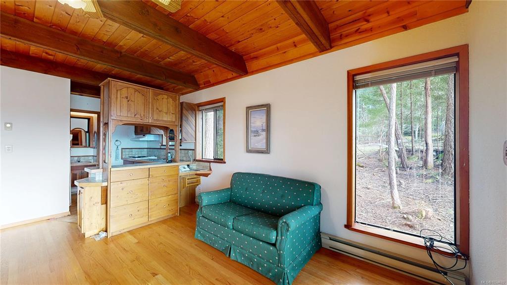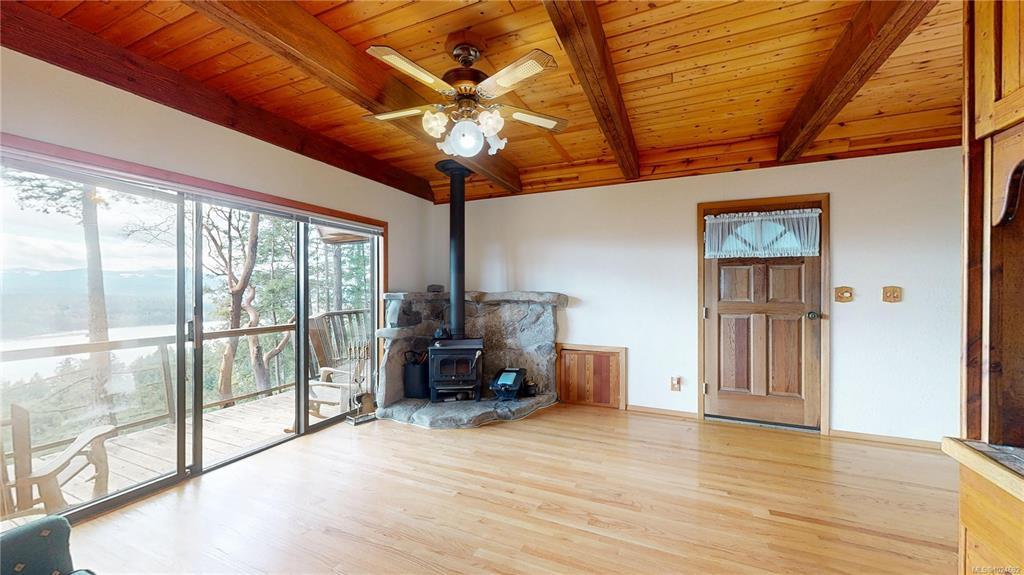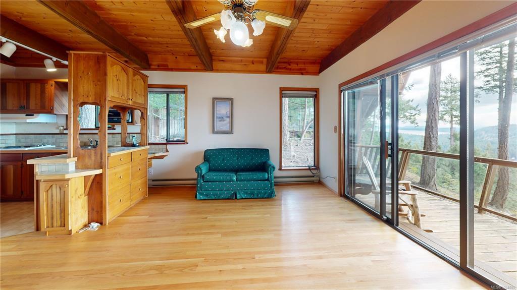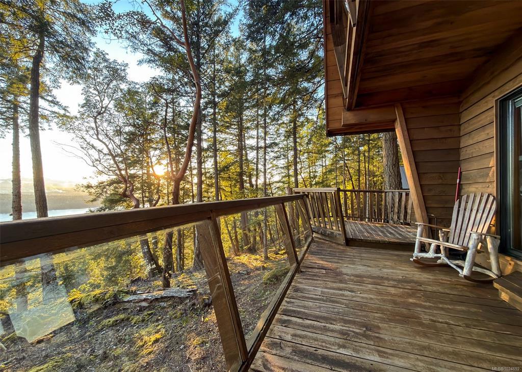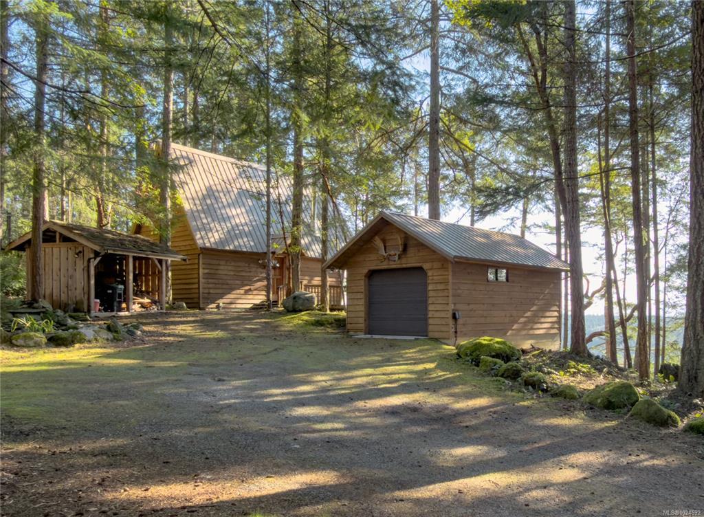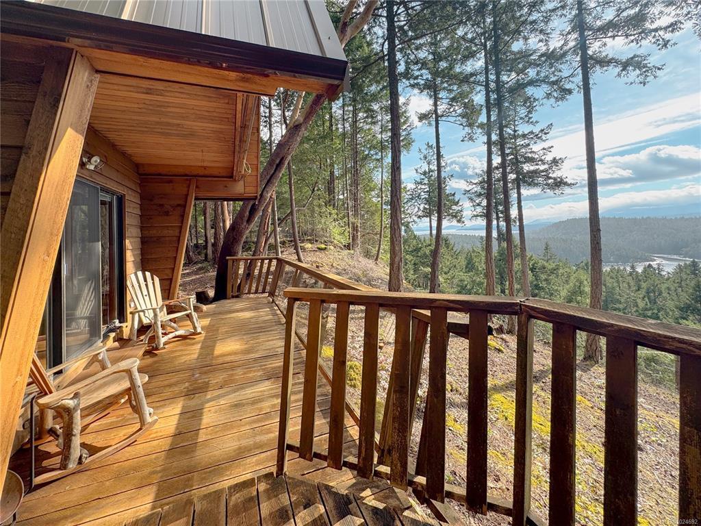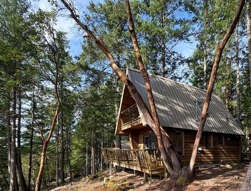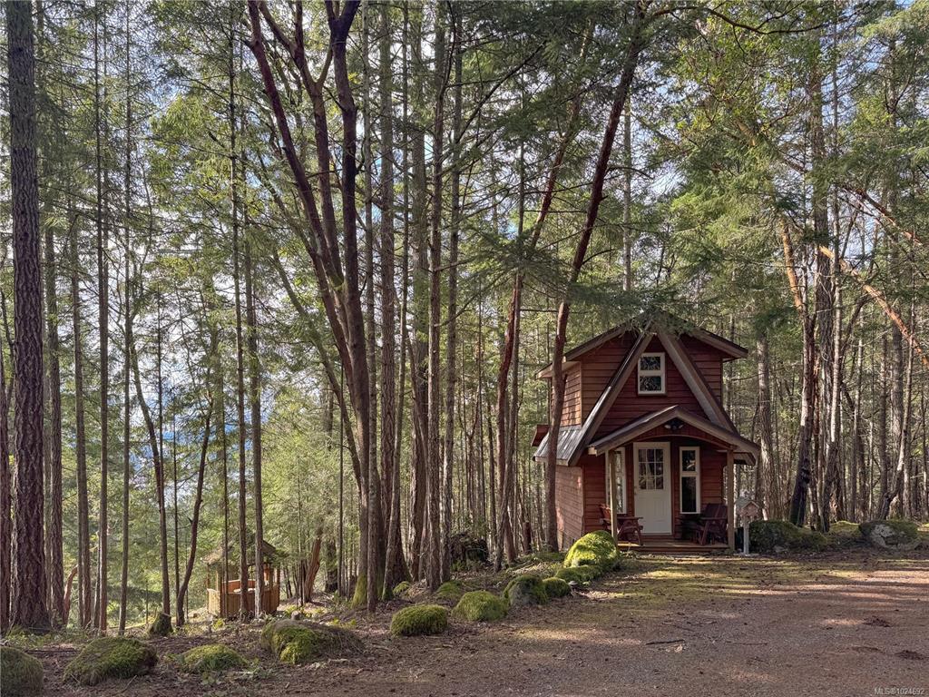 Stunning ocean and mountain views are enjoyed from this private 5.18-acre Gabriola property. Tucked into the woods, the charming 676 sq ft wood-sided cottage with a metal roof offers a beautiful retreat with a southwest-facing deck perfectly positioned to take in the expansive views across the water and islands. Inside, the home has a warm, inviting feel with wood ceilings and beams, rockwork around the woodstove, wood cabinetry, and a 3-piece bath on the main level. Upstairs, the primary bedroom offers vaulted ceilings, built-ins, ocean views, and its own deck. The property includes a detached garage, small studio, garden area, and a separate Airstream site with deck and outdoor space. The lower acreage is accessed from South Road, where a path leads to a sunny clearing ideal for a private getaway. Close to the Gabriola Golf Course and the local cidery. Full information package with floor plan, virtual tour & video available. Buyer to verify information deemed important.