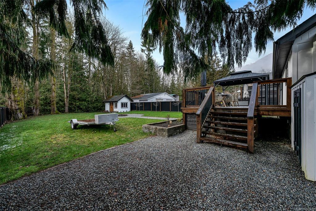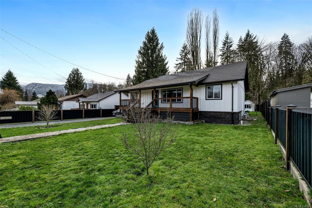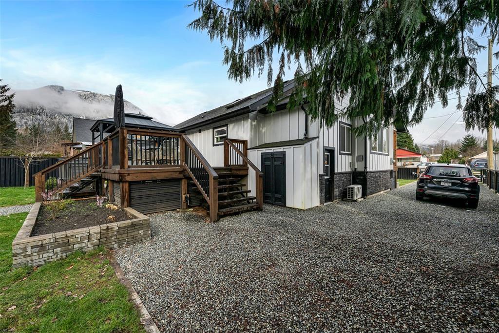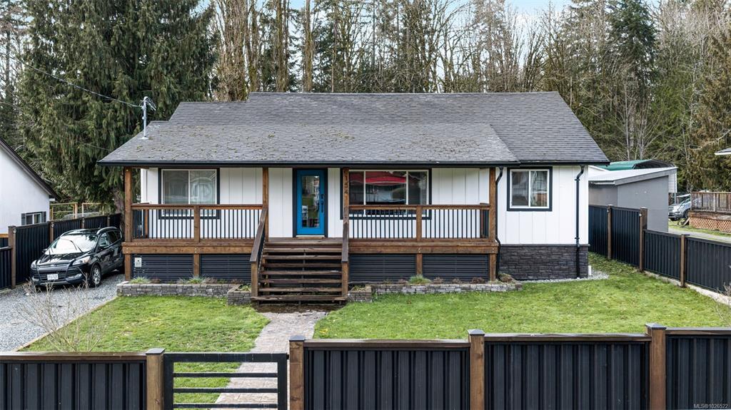 Welcome to this beautifully updated home in the heart of Lake Cowichan. Extensively renovated from top to bottom, this move-in ready home offers over 1,900 sq ft of living space with new flooring throughout, a fully refreshed bathroom, upgraded plumbing, vinyl windows, durable cement fibre siding, & many, many more improvements. The layout features 2 bedrooms, a den, & a fully finished basement—ideal for guests, a home office, or added living space. The cozy primary bedroom includes a walk-in closet & french doors that open directly onto the deck, creating a quiet & private space to unwind. Set on nearly 0.3 acres, the fully fenced & landscaped property backs onto a creek & green space, offering a private backyard setting with beautiful mountain views. The oversized driveway provides ample parking for multiple vehicles or an RV. Within walking distance to all local amenities, this turnkey property offers an exceptional blend of nature, modern updates, & everyday convenience.