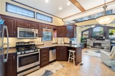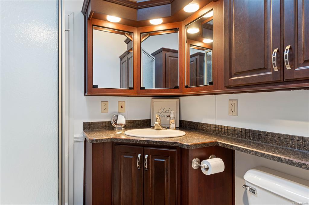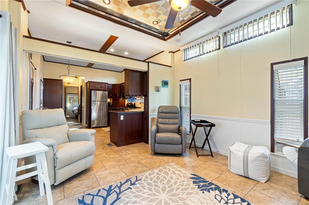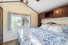 OWN YOUR PROPERTY at Resort On The Lake, a full serviced, pet-friendly community offering 149 bare land strata lots welcoming both recreational and full-time residents. This quiet, picture-perfect, neighbourhood is beautifully maintained and offers exceptional amenities: outdoor pool and hot tub, pickle ball courts, clubhouse with full kitchen and gathering space, gym, laundry, showers/change rooms. Steps from the private lake entrance for year-round swimming, paddling, or strolling the walking trail circling the water. Your lot, one of the few with a view of the lake, includes a 2014 built single-wide mobile home offering comfortable, low-maintenance living. Connected to full municipal services, gas furnace, gas stove, electric fireplace, King RV bed, this is ideal for downsizers, or those seeking a peaceful recreational retreat with year-round usability.