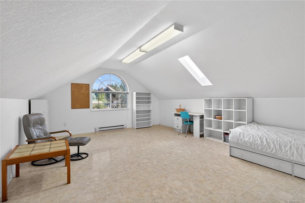 With nearly 2,000 sq ft, this home features 3 bedrooms, 2 bathrooms, warm oak hardwood flooring, a gas fireplace, and three skylights that fill the space with natural light. A large upper flex room provides ideal space for guests, hobbies, or a home office.