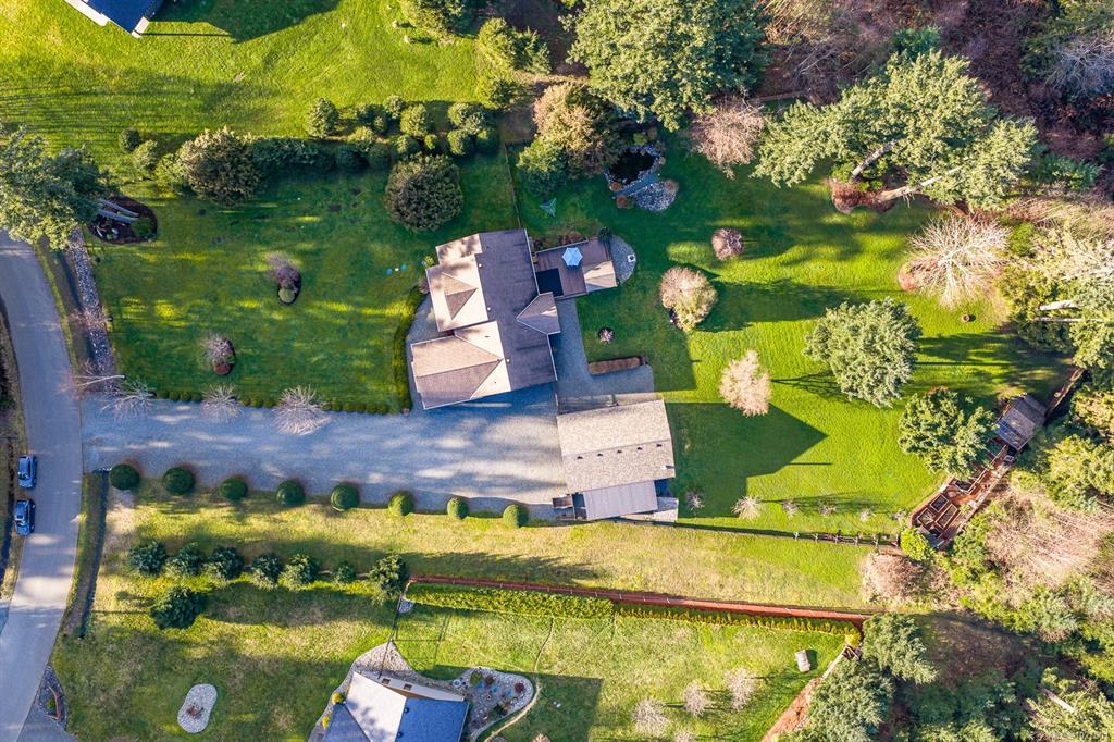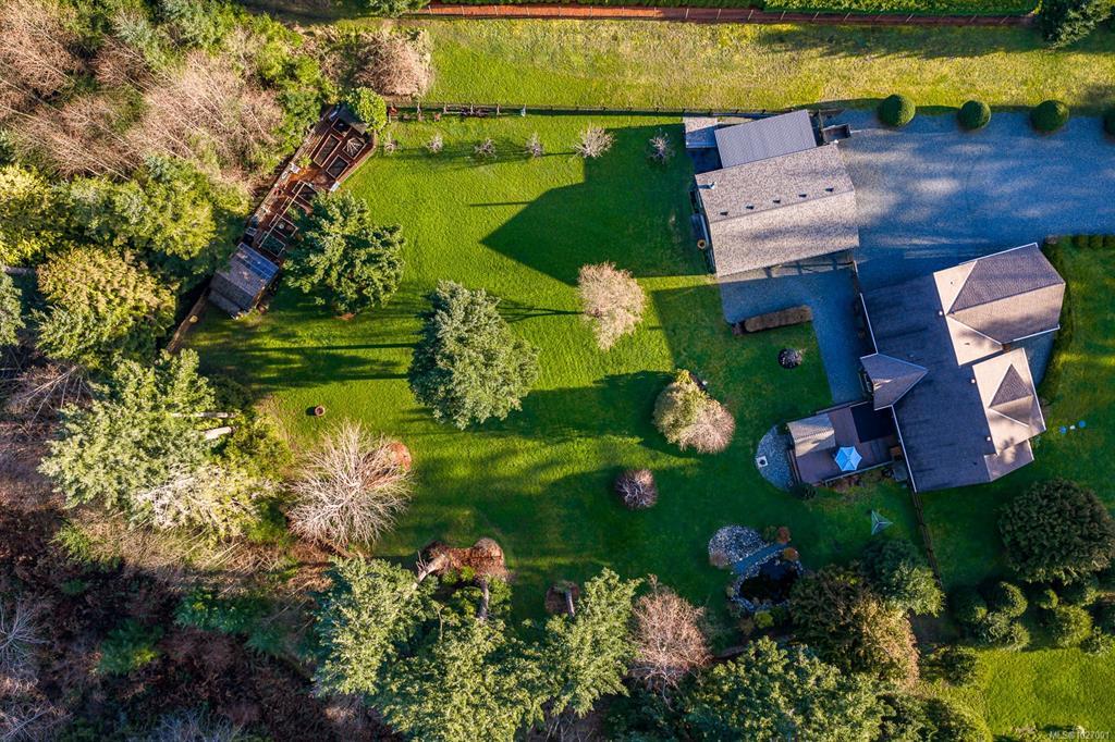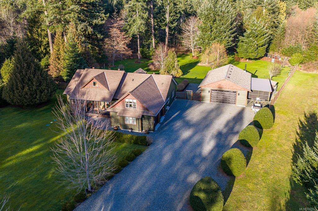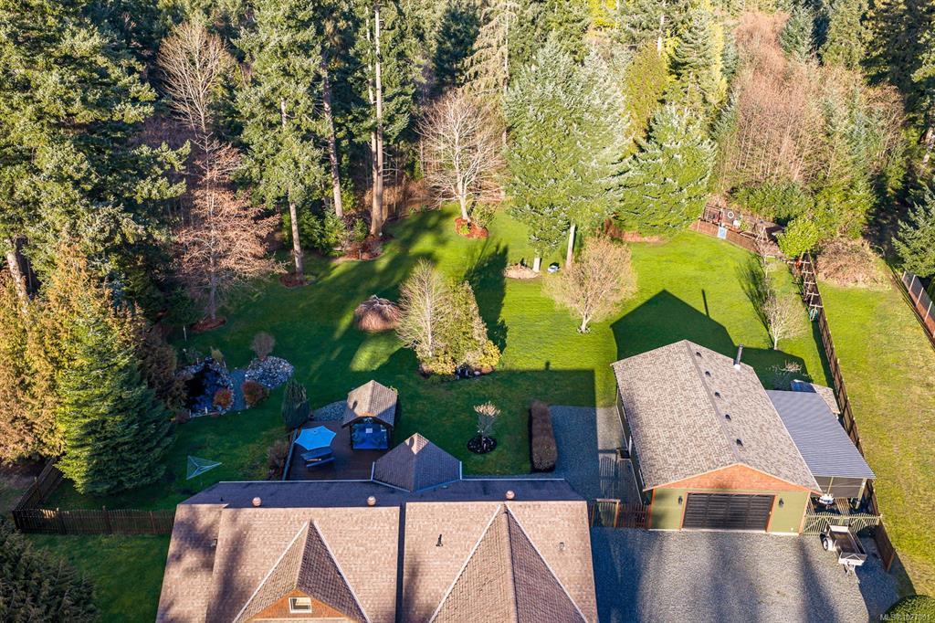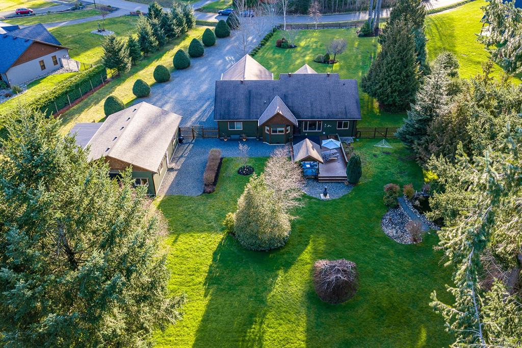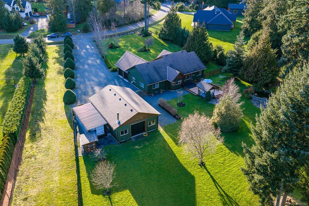Located on sought after Trillium Drive, this spacious 2,200 sqft rancher w/bonus room offers the ease of main-level living with flexibility of space for guests or home office. Set on 1.34 acres of pristinely manicured, fully fenced property, is a rare opportunity to own property that has been lovingly maintained and intentionally designed. The grounds feature a dedicated garden area, peaceful pond, and expansive green space complete with your own grove of fruit trees. Step outside to a large rear deck with gazebo, ideal for entertaining, relaxing, or simply taking in the quiet beauty of your surroundings. For those needing space to work or play, the impressive 41’ x 27’ (approx. 1,200 sqft) shop is a standout feature, complete with a certified woodstove and ample room for vehicles, tools, and all your recreational toys. Located just minutes from Comox amenities, this property offers the perfect balance of rural charm and everyday convenience.