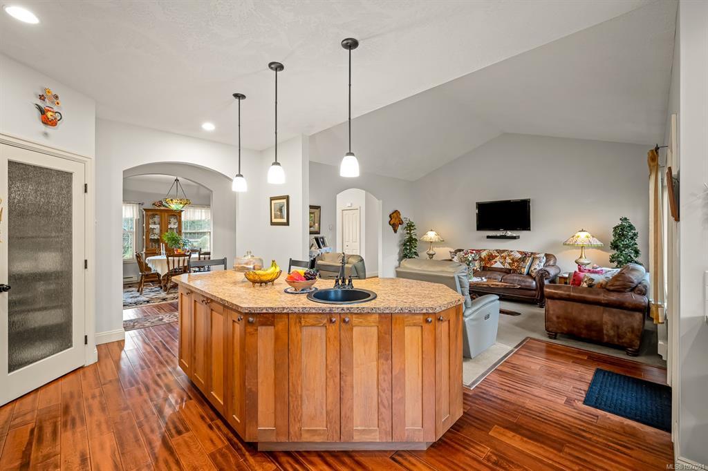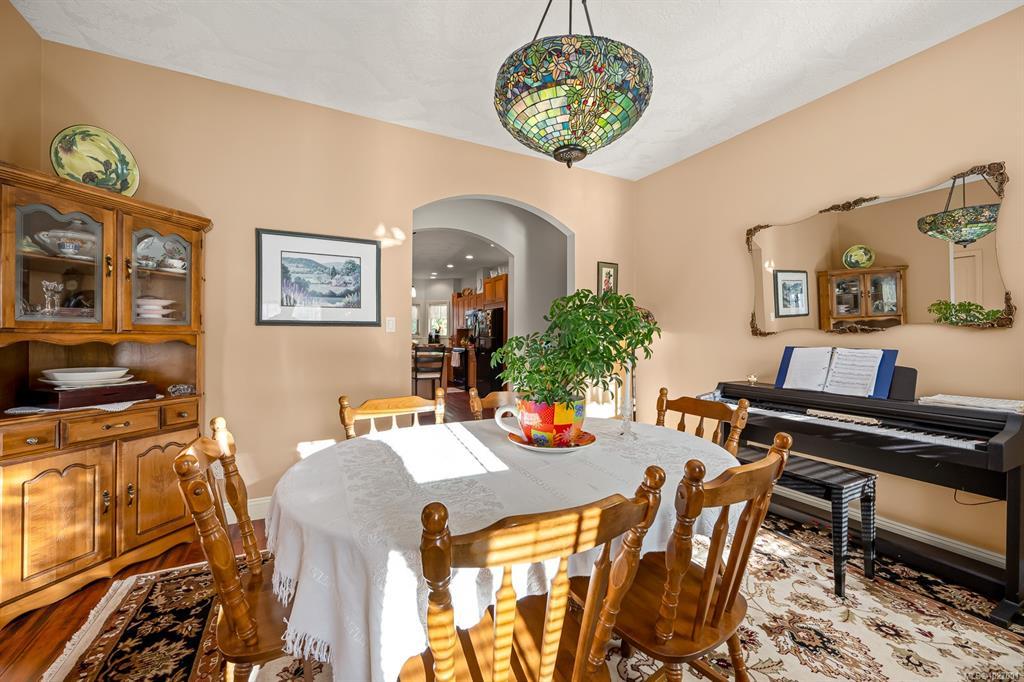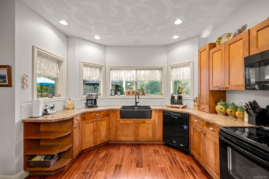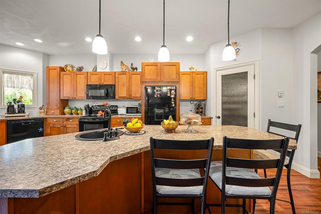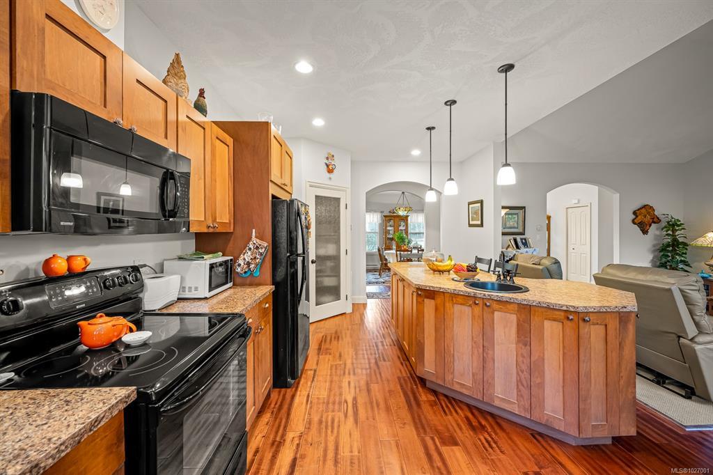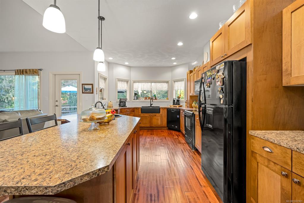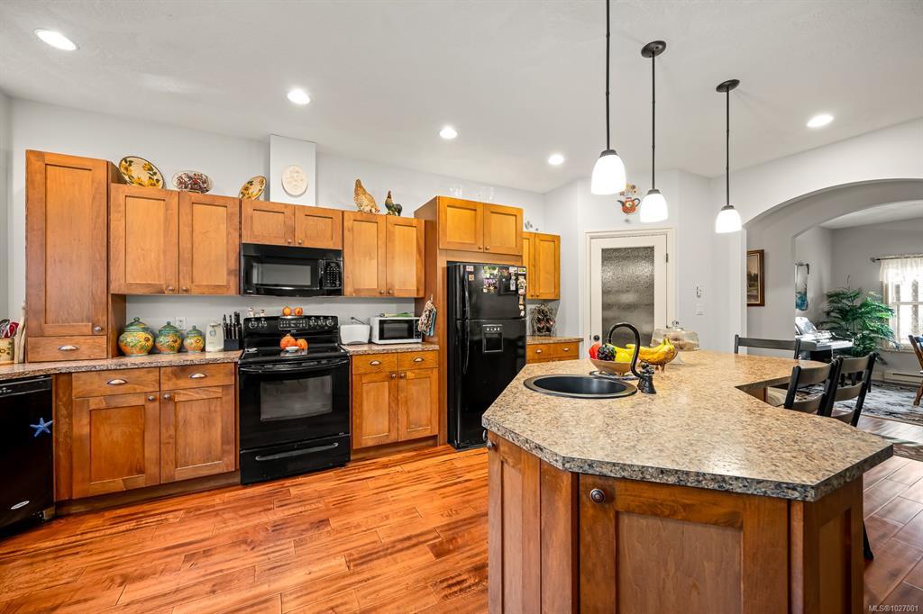 Located on sought after Trillium Drive, this spacious 2,200 sqft rancher w/bonus room offers the ease of main-level living with flexibility of space for guests or home office. Set on 1.34 acres of pristinely manicured, fully fenced property, is a rare opportunity to own property that has been lovingly maintained and intentionally designed. The grounds feature a dedicated garden area, peaceful pond, and expansive green space complete with your own grove of fruit trees. Step outside to a large rear deck with gazebo, ideal for entertaining, relaxing, or simply taking in the quiet beauty of your surroundings. For those needing space to work or play, the impressive 41’ x 27’ (approx. 1,200 sqft) shop is a standout feature, complete with a certified woodstove and ample room for vehicles, tools, and all your recreational toys. Located just minutes from Comox amenities, this property offers the perfect balance of rural charm and everyday convenience.