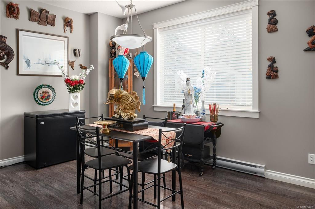 This immaculate home is perfect for a first time buyer, family or retiree, located near Westwood Lake Park which offers hiking, swimming, kayaking, jogging & biking. The 2 storey home is 2143 sq. ft. of fabulous living space with 4 bedrooms & 3 bathrooms in a very desirable neighbourhood & situated on a quiet no thru street. The main level features a spacious open plan, 9 ft ceilings, gas fireplace in the living room, dining area with access to the patio for your outdoor enjoyment, overlooking mature trees & park like setting. The gourmet kitchen has a convenient island/eating bar, lots of cabinets & counterspace. Upstairs you will find the primary bedroom with vaulted ceilings, large walk in closet & 5 piece ensuite. There are 3 additional beds, 4 piece bath & laundry room with built in cabinets. The fantastic location is also close to Vancouver Island University. Pride of ownership is very evident. The back yard is low maintenance, fenced & includes a garden shed for outdoor storage.