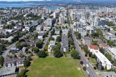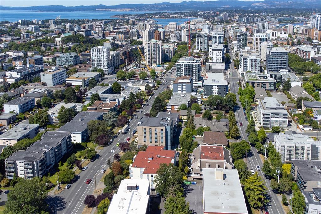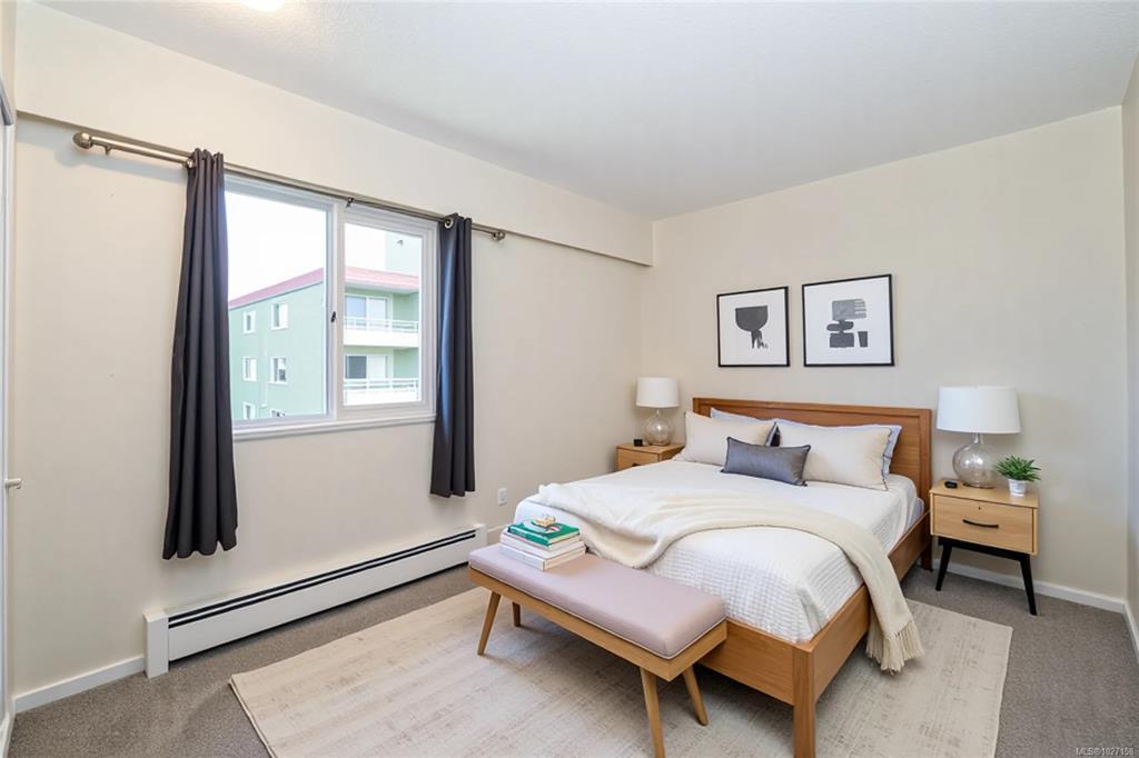 Unit 401 at Evergreen Hill is your ticket to one of Victoria's most walkable, liveable neighbourhoods. Step outside and walk to cafés, great restaurants, boutique shops, and nightlife Downtown. Beacon Hill Park, Cook St Village, and the Dallas waterfront are just minutes away. Inside, the bright top-floor condo delivers 1,058 SF of updated comfort: quartz counters, shaker cabinets, newer appliances, vinyl plank flooring, and renovated bathrooms. The enclosed balcony with newer sliders means you'll enjoy your top-floor views year-round. Rounding out the package: heat and hot water included in strata fees, plus bike storage, a hobby workshop, shared laundry (in-suite permitted with Strata approval), dedicated parking, and a storage locker. Pets welcome (2 dogs, 2 cats, or one of each) and rentals allowed. Tucked on the edge of Downtown on Upper Yates, Evergreen Hill delivers city living in Victoria done right.