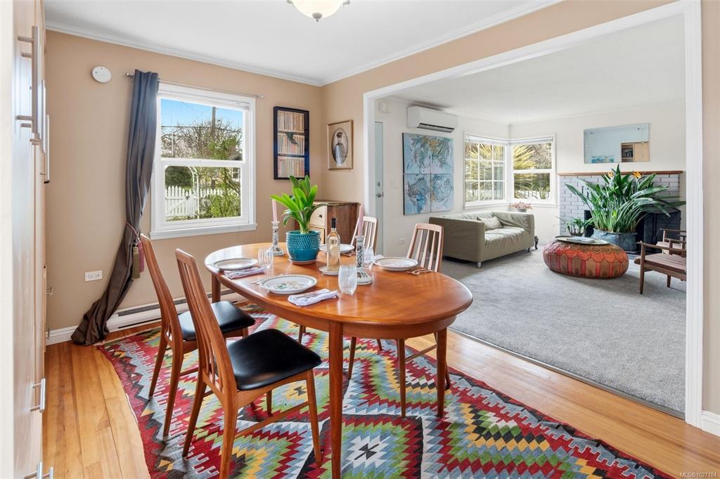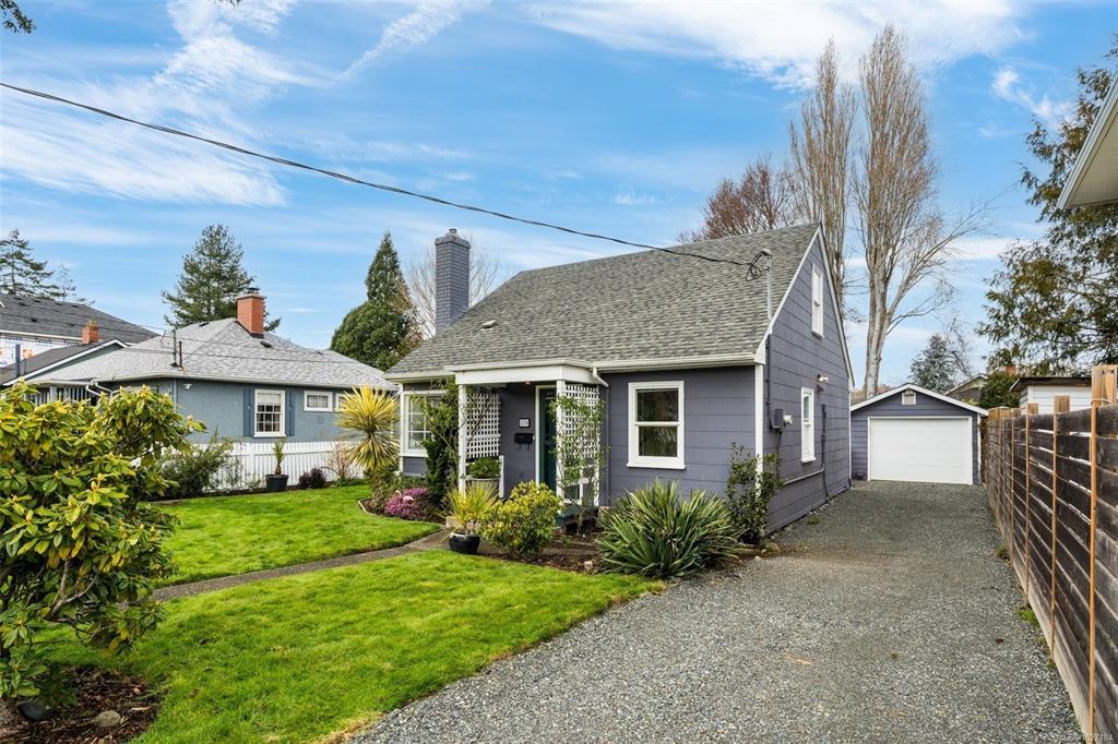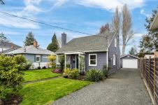 Looking for that picturesque white picket fence bungalow on a quaint, cherry blossom-lined street? Look no further. This charming 1940s home has been completely updated and offers a fantastic alternative to townhouse or strata living. Featuring 1,200+ sq ft with 2–3 bedrooms, a spacious living room with oversized corner windows, a converted flex room (currently the dining room, originally the primary bedroom), a cozy kitchen, and an updated main floor 4 piece bathroom. Upstairs offers two spacious bedrooms, both with additional attic storage. Original fir hardwood, heat pump, 200amp and plenty of storage throughout. The enormous 9,500 sq ft lot is a gardener’s paradise with mature trees, garden beds, a greenhouse, and a detached single-car garage with power (50 amp). Incredible holding property with development upside (50'x190' lot). Located in sought-after, walkable Oaklands, close to parks, recreation, golf, shopping, and public transit. *OPEN HOUSE SUNDAY 2:00pm - 3:30pm*